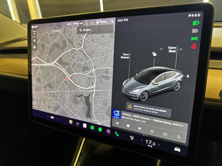 This 2020 Tesla Model 3 Performance offers an exhilarating electric driving experience with its impressive acceleration. As an electric vehicle, it boasts a substantial 82 kWh battery, providing a maximum range of 329 miles when new. Charging is convenient, with a full charge at home taking approximately 12 hours using a 7kW charger, and rapid charging to 80% achievable in just 26 minutes at a public station. This Model 3 comes equipped with advanced features including LED headlights for superior visibility, a park assist camera and front parking sensors to aid manoeuvring, and keyless entry with remote control via an app for ultimate convenience.The Performance variant of the Model 3 truly stands out, particularly with its remarkable 0-60mph acceleration time of just 3.2 seconds, demonstrating its superior performance capabilities compared to other vehicles in its class. This four wheel drive electric saloon combines cutting edge technology with dynamic driving, making it a compelling choice for those seeking both efficiency and excitement. The inclusion of air conditioning ensures a comfortable cabin environment in all conditions..