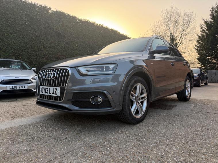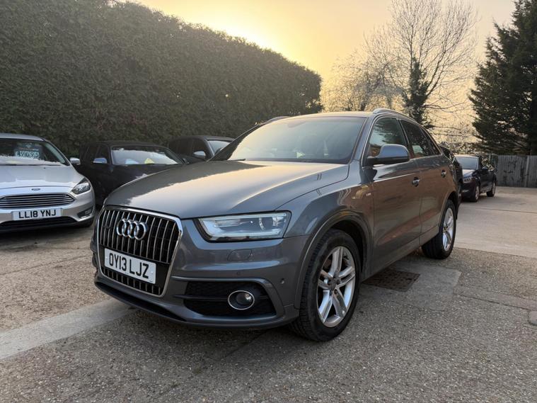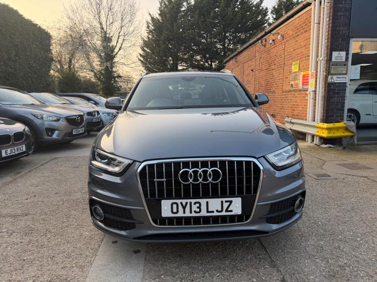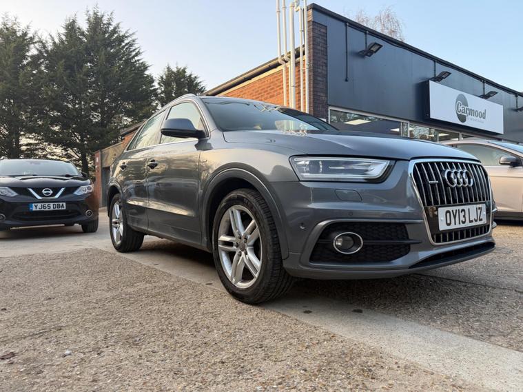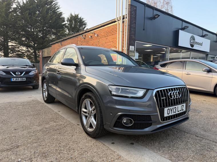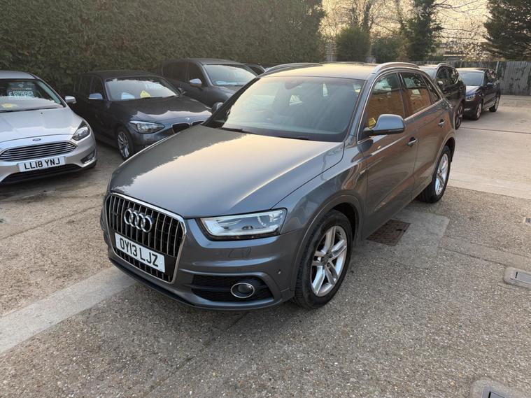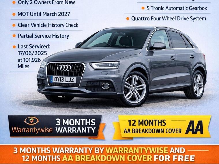 **Audi Q3 2.0 TDI S line S Tronic quattro Euro 5 (s/s) 5dr****Registration:** OY13LJZ**Year:** 2013 (13)**Mileage:** 103, 300 miles**Fuel:** Diesel**Transmission:** Automatic**Colour:** Grey**Owners:** 2 Owners---**Vehicle details:**• 103, 300 miles• Only 2 owners from new• MOT valid until March 2027• Clear vehicle history check• Partial service history• Last serviced on 17/06/2025 at 101, 926 miles• 2.0L TDI diesel engine• S Tronic automatic gearbox• Quattro four wheel drive system• **3 MONTHS AA WARRANTY AND 12 MONTHS AA BREAKDOWN COVER**---**Features and equipment:**• S line specification• BOSE surround sound system• Satellite navigation• Front and rear parking sensors• Reversing camera• Park assist• Bluetooth phone connectivity• Audi Connect• Dual zone climate control• Multifunction steering wheel• Electric windows• Electric mirrors• Alloy wheels• Spacious boot and practical interior---A well maintained **Audi Q3 S line quattro**, combining strong performance with practicality. The powerful 2.0 TDI engine, smooth S Tronic automatic gearbox and Quattro four wheel drive system make it an excellent choice for both city driving and long journeys.---**For more available cars:* dealer's website / Call:** 01223964083**Location:** CB24 9LQ.