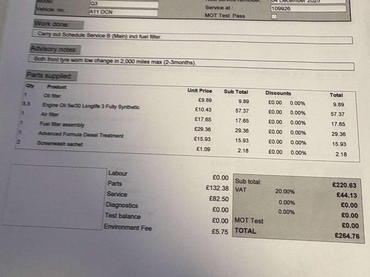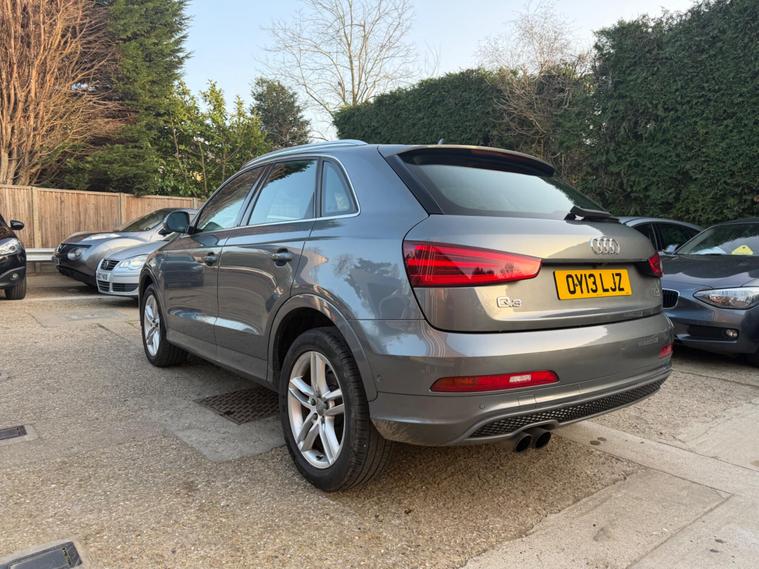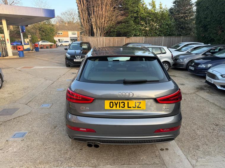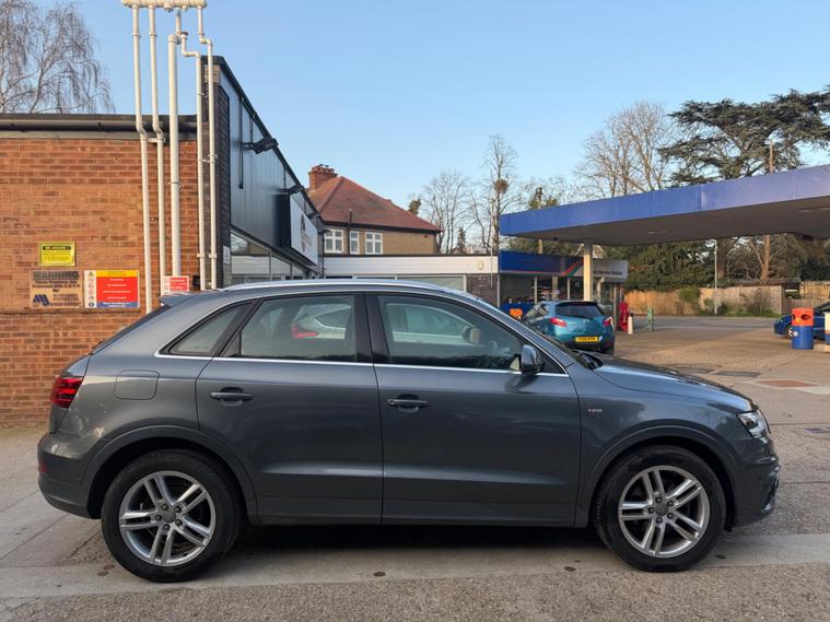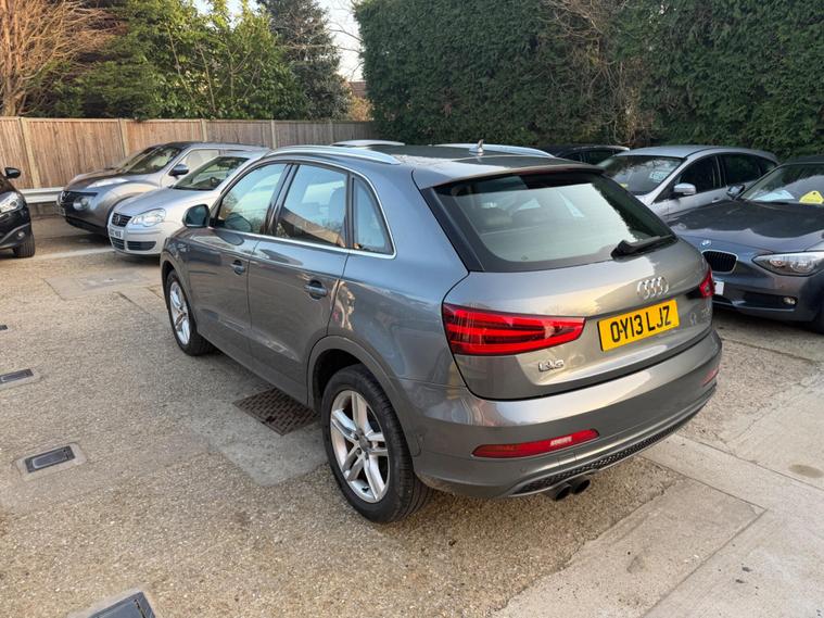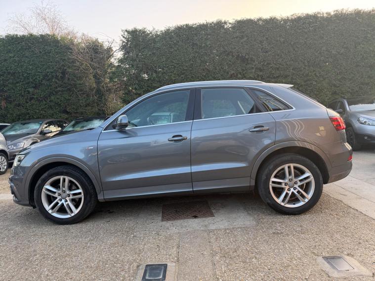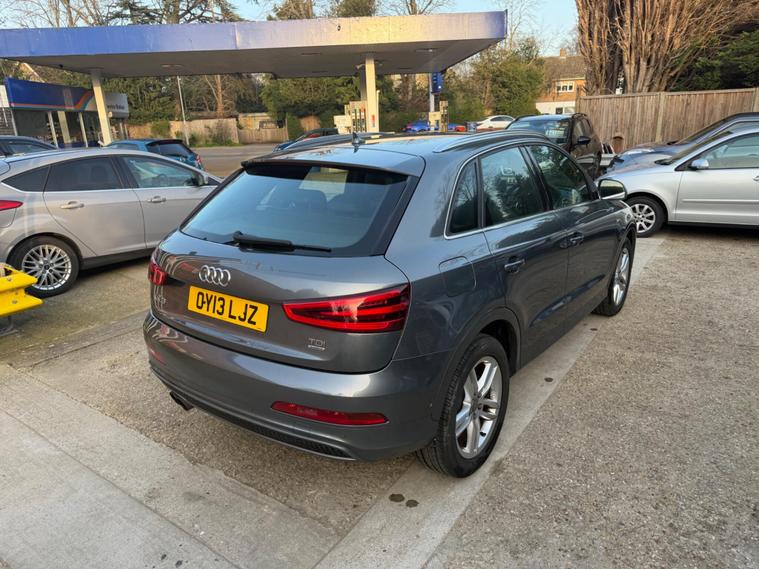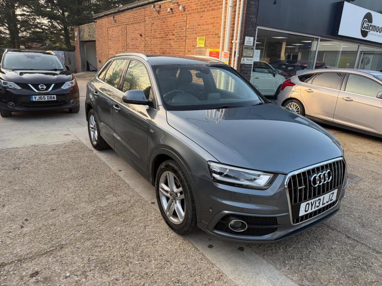 **Audi Q3 2.0 TDI S line S Tronic quattro Euro 5 (s/s) 5dr****Registration:** OY13LJZ**Year:** 2013 (13)**Mileage:** 103, 300 miles**Fuel:** Diesel**Transmission:** Automatic**Colour:** Grey**Owners:** 2 Owners---**Vehicle details:**• 103, 300 miles• Only 2 owners from new• MOT valid until March 2027• Clear vehicle history check• Partial service history• Last serviced on 17/06/2025 at 101, 926 miles• 2.0L TDI diesel engine• S Tronic automatic gearbox• Quattro four wheel drive system• **3 MONTHS AA WARRANTY AND 12 MONTHS AA BREAKDOWN COVER**---**Features and equipment:**• S line specification• BOSE surround sound system• Satellite navigation• Front and rear parking sensors• Reversing camera• Park assist• Bluetooth phone connectivity• Audi Connect• Dual zone climate control• Multifunction steering wheel• Electric windows• Electric mirrors• Alloy wheels• Spacious boot and practical interior---A well maintained **Audi Q3 S line quattro**, combining strong performance with practicality. The powerful 2.0 TDI engine, smooth S Tronic automatic gearbox and Quattro four wheel drive system make it an excellent choice for both city driving and long journeys.---**For more available cars:* dealer's website / Call:** 01223964083**Location:** CB24 9LQ.