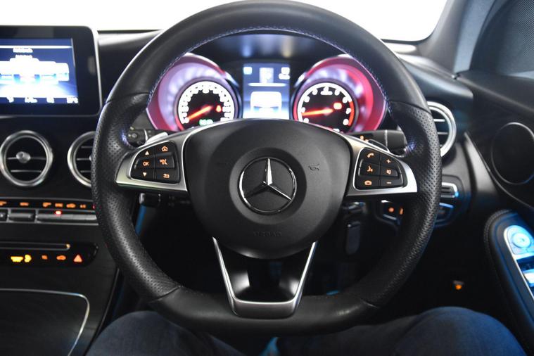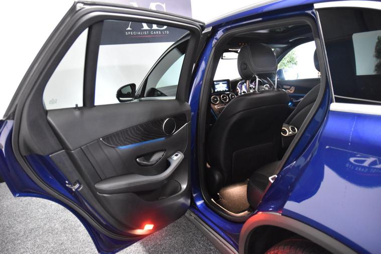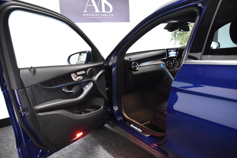 We are pleased to offer this stunning Mercedes GLC250 AMG-Line premium finished in Brilliant blue metallic with black leather interior. This car has covered just 22, 000 miles from new complete with fantastic service history which includes 3 Mercedes main dealer services and Independent servicing. The spec of this car includes panoramic roof, fully electric front seats with memory function, heated front seats, configurable ambient lighting, reverse camera, LED headlights, auto lights and wipers, parking sensors, cruise control, privacy glass, blue tooth phone connection, black ash interior trim, navigation and much more..
