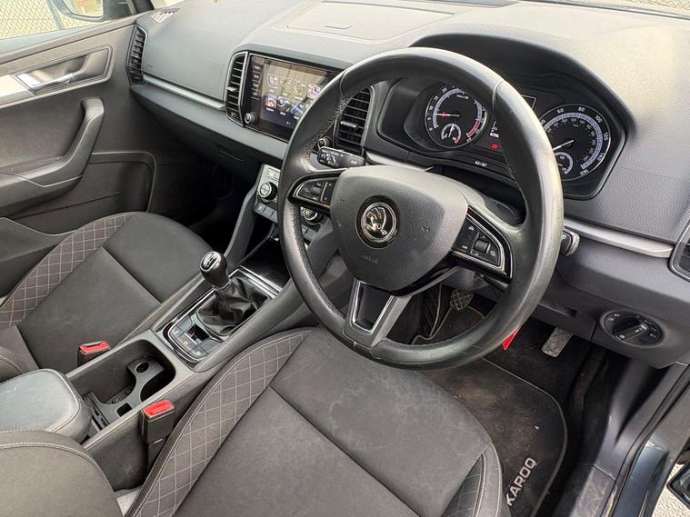 This 2019 Skoda Karoq TDI SE is a great example with a clear vehicle history. This popular compact SUV features a 1.6 litre Euro 6 diesel engine, offering a blend of efficiency and performance. The SE trim level comes well equipped, including automatic headlights that activate when needed, and a light and rain sensor system that also includes an auto dimming rear view mirror for your convenience. Inside, you can enjoy your favourite radio stations with DAB digital radio and stay connected on the go with Bluetooth functionality. Comfort is assured with dual zone climate control air conditioning, and parking is made easier with rear parking sensors.The Skoda Karoq TDI SE stands out with its impressive fuel economy, achieving around 50 miles per gallon, which is excellent for its class and helps to keep running costs down. Its low CO2 emissions also contribute to a more environmentally friendly drive. Furthermore, this model boasts a large boot space, providing ample room for shopping, luggage, or sports equipment, making it a practical choice for families and individuals alike. The Karoq also sits in a low insurance group, indicating that it is more affordable to insure compared to many other vehicles of a similar size and type..