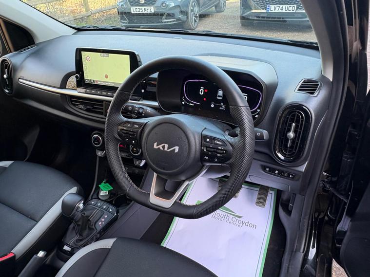 This 2025 Kia Picanto GT-Line S presents an exceptional ownership proposition with an incredibly low mileage of just 4541 miles, a testament to its careful use by its single owner. Powered by an efficient 1.2L petrol engine and meeting Euro 6 emissions standards, this model combines practicality with a touch of sporty style. The GT-Line S trim level ensures a well equipped experience, featuring desirable additions such as LED headlights for enhanced visibility, a Bluetooth connection for seamless audio and calls, and a smart keyless entry system complete with a start-stop button for effortless ignition.Further enhancing the appeal of this already impressive vehicle are its premium features, including an electric tilting and sliding sunroof that floods the cabin with natural light, and a heated steering wheel for added comfort during colder journeys. These notable features, alongside its low insurance group rating, clearly set this Kia Picanto apart from others in its class, offering a superior combination of comfort, technology, and economy for its next owner..
