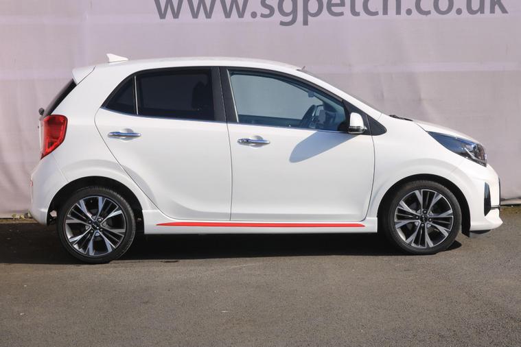 We only advertise a selection of our used cars on Autotrader. To view all our used cars currently in stock please visit our website https:/ dealer's website Be sure to check out our 360 Exterior and Interior Panorama view which is available for every vehicle.Boasting exceptionally low mileage for its age, this 2021 Kia Picanto T GDi GT Line S presents a superb ownership proposition. This Euro 6 compliant 1.0 litre petrol model comes with a full dealership service history, with its last service completed on 2026 06 03 at 6655 miles. You can also drive with peace of mind, thanks to the remaining 28 months of manufacturer warranty. Notable features include a heated steering wheel for those colder mornings, Apple CarPlay with voice control to keep you connected, and a reversing camera system with dynamic guidelines for easier parking. Inside, you'll find automatic air conditioning for a comfortable cabin temperature and a smart key with an engine start stop button for keyless entry and ignition. This Kia Picanto T GDi GT Line S offers impressive efficiency and performance, making it stand out from other vehicles in its class. With a fuel economy of 53 miles per gallon, it is an economical choice for your daily journeys, complemented by its low CO2 emissions. Can't get to see it? Request a bespoke video, or we’ll come to you.All vehicles are thoroughly prepared for sale by our factory trained technicians. Up to 24 months RAC Platinum Warranty available for added peace of mind and financial security. 1 Year Warranty £349- or 2-Year warranty for just £449.00. Please ask for details. This car is offered by the Kia Dealer of the Year 2019! Why not put our reputation for quality and value to the test? Call to arrange a test drive. See our customer testimonials at dealer's website
