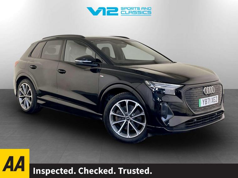 Introducing the Audi Q4 E-tron, a stunning SUV that combines luxury, performance, and sustainability in one sleek package. Finished in a sleek Black exterior, this Audi Q4 E-tron is sure to turn heads wherever you go. But it's not just about looks - under the hood, you'll find a powerful 82kWh electric motor delivering 204 ps of pure driving pleasure.Step inside the Audi Q4 E-tron and you'll be greeted by a spacious and luxurious interior, packed with the latest technology and premium materials. From the comfortable seats to the state-of-the-art infotainment system, every detail has been designed with your comfort and convenience in mind.Don't miss your chance to own this Audi Q4 E-tron - a true masterpiece of engineering and design. Contact us today to schedule a test drive and experience the future of driving for yourself.For peace of mind this vehicle has completed a multi point AA dealer's website finance is also available.We are open 7 days a week and have more than 1500 cars to choose from.All our Euro 4 Petrol and Euro 6 Diesel vehicles meet the ULEZ standard.Vehicle specification can be found below. From time to time vehicles have manufacturer recalls notified. Please read our recall policy on our website for further information. Please be advised that the advertised electric vehicle (EV) listings may experience battery degradation over time, resulting in reduced performance and range compared to the original specifications. Factors such as usage patterns, environmental conditions, and charging practices can contribute to this degradation. While we strive to provide accurate information, the actual battery health and performance of each EV may vary. Customers are encouraged to conduct thorough research and consider the potential impact of battery degradation before making a purchase decision. We recommend consulting with a qualified technician or conducting a battery health inspection for further assessment. This vehicle comes with an AVILOO Battery Health Certificate - the global standard for EV battery testing. Full independent analysis confirms excellent battery condition with detailed State of Health assessment, cell-level checks, and accurate range data. Certificate included with purchase for your complete peace of mind and future resale value.Disclaimer: While every effort is made to ensure the accuracy of vehicle specifications, features, and descriptions, errors and omissions may occur. Specifications and equipment may vary and may not be present on the vehicle at the point of sale. Buyers are advised to confirm all details with the seller before completing a purchase..