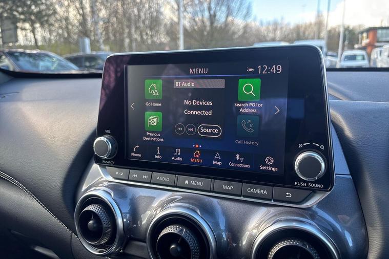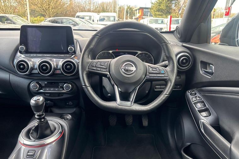 This 2023 Nissan Juke DIG-T Tekna is a remarkable find, boasting exceptionally low mileage for its age at just 8156 miles. As a Nissan manufacturer approved vehicle, it comes with the assurance of quality and care. This Tekna trim Juke is powered by an efficient 1.0 litre petrol engine, meeting Euro 6 emission standards. It also features convenient keyless entry with Intelligent Key and Start Push Button, offering walk away lock and approach unlock functions for effortless access.Enjoy seamless connectivity with Apple CarPlay and Google Android Auto integration, keeping your digital life accessible on the go. This Juke stands out with its impressive fuel economy, achieving a highlight of 48 miles per gallon, and also benefits from low CO2 emissions, indicating a more environmentally conscious and cost effective driving experience compared to many other vehicles in its class..