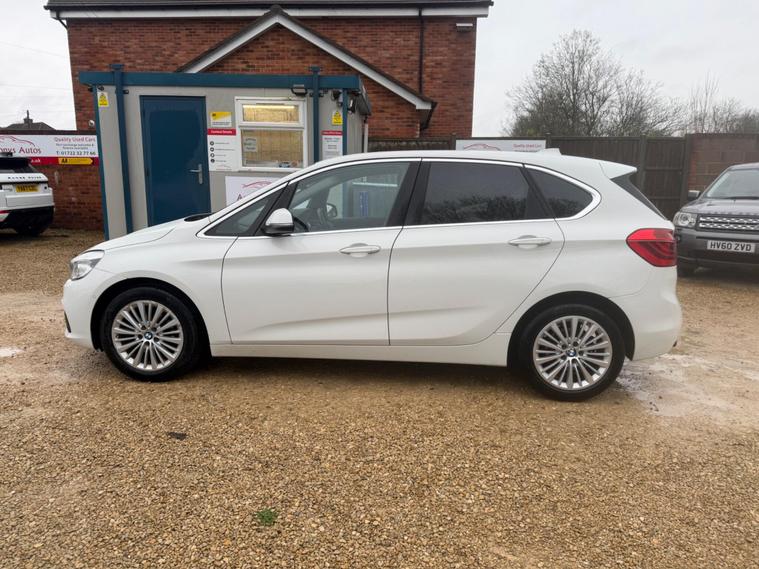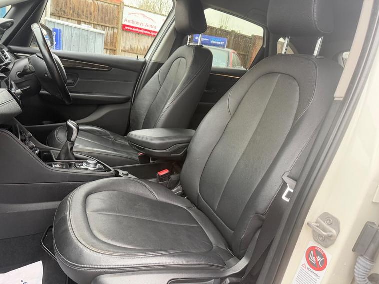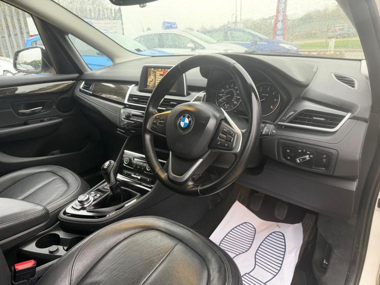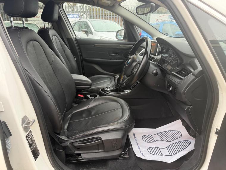BMW 2 Series Active Tourer 2.0 218d Luxury Euro 6 (s/s) 5dr in White with heated Black Leather interior. This top of the range car is in excellent condition throughout with a Full BMW Service history. Comes with a NEW MOT and a 6 month WARRANTY. Excellent Condition both inside and out. This is a pet free, non smoker car. Specification includes: Full leather seats, Heated, Sat Nav, DAB Digital Radio, front & rear parking sensors, rear camera, 4 x electric windows, Dual climate control, height adjustable driver and passenger seat, rain sensor, Hands Free Bluetooth Phone, auto lights, remote central locking, Alarm, immobiliser, dual AC, USB, AUX port, driver information centre, auto dipping rear view mirrors, Isofix, alarm, Leather-covered steering wheel, trip computer, third brake light, traction control, load cover, front fog fights, headlight washers + 2 keys and much more. All vehicles come with a pre-delivery inspection. 6 MONTH warranty included with additional comprehensive warranties for 2 and 3 years warranty upgrades available. All Major Cards Accepted. All Part Exchange Welcome. ***LOW RATE FINANCE AVAILABLE***. Call today to view and drive!.