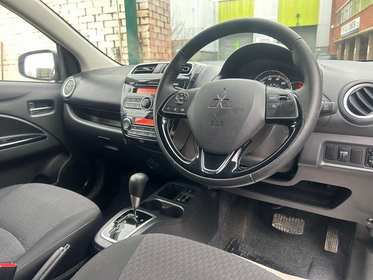 Discover this exceptional 2017 Mitsubishi Mirage Juro, boasting an incredibly low mileage of just 5000 miles, making it a truly unique find. This Juro model is equipped with a responsive 1.2 litre petrol engine and meets the Euro 6 emission standards. Inside, you'll appreciate the comfort of heated front seats and the convenience of climate control air conditioning. For enhanced visibility and safety, it features Bi-Xenon HID headlamps with an automatic light sensor, ensuring optimal illumination in all conditions. Stay connected and entertained on the go with Bluetooth connectivity, complete with audio streaming capabilities.This Mitsubishi Mirage Juro offers impressive efficiency, achieving an outstanding fuel economy of up to 66 miles per gallon, which is significantly better than many other vehicles in its class. Its low CO2 emissions further contribute to its economical and environmentally conscious performance. This combination of low mileage, excellent fuel economy, and desirable features makes this Mirage Juro a stand out choice for those seeking a well maintained and efficient compact car. On v car cat s..