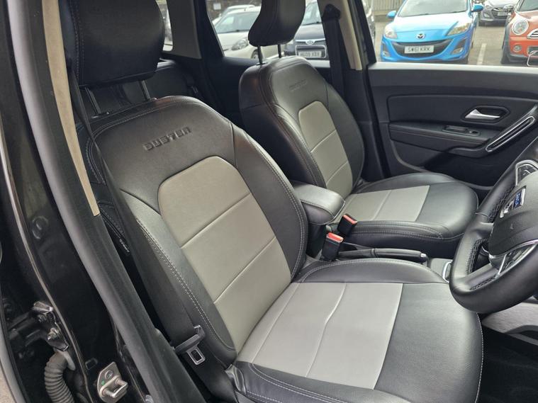 We are proud to present this lovely looking Dacia Duster Prestige Automatic from Junction 7 Motor Village based just off Junction 7 of the M65. We are a family run AA Approved dealership prioritizing excellent customer relations and satisfaction. The Duster is presented with a Black exterior and a premium Black leather interior. It is a clean 1 owner example of this popular model from Dacia with full service history. The bodywork is very good as is the interior however please be aware it may have some light marks commensurate with the age and the mileage of the vehicle. The vehicle is supplied with 2 keys, service history, logbook, mats and locking wheel nut. The full feature list can be found in the features section below and includes a rear parking camera, Bluetooth phone connectivity and DAB receiver.The vehicle will come with a comprehensive 3 months warranty covering all major aspects of the vehicle. If the vehicle has less than 6 months MOT remaining, we will have a fresh MOT done on it so it comes with 12 months MOT remaining. We also give a complimentary 12 months of AA breakdown cover with every purchase. We will also service the vehicle to bring it up to date with services if required. We are open 7 days a week for viewings and can deliver up to 50 miles for free (£1.75 per mile thereafter). Please call or message for further info/to arrange a viewing. We have many more vehicles in stock, please visit dealer's website for more or visit us in person to see the full collection. Thanks for looking!.