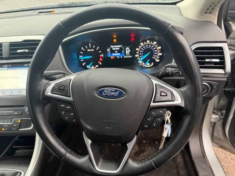 This 2019 Ford Mondeo TDCi Zetec Edition presents a superb ownership proposition, having been meticulously maintained by just one owner from new. Under the bonnet, you'll find a capable 2.0 litre diesel engine, meeting Euro 6 emissions standards, ensuring efficiency and compliance. This Zetec Edition comes equipped with a host of convenient features, including rear compartment manual air conditioning with independent rear controls, and dual zone electronic automatic temperature control for personalised comfort. The SYNC 3 system, complete with an 8 inch colour touchscreen, offers seamless Bluetooth connectivity, voice control, USB ports, and emergency assistance. Furthermore, front and rear parking sensors are included, making manoeuvring in tighter spaces considerably easier.The generous boot space of this Mondeo is a significant advantage, offering ample room for luggage, shopping, or equipment. When it comes to performance, this model boasts an impressive 0 to 62mph acceleration time of just 9.3 seconds, demonstrating a responsive and capable drive. These attributes, combined with its single owner provenance and comprehensive feature set, clearly set this Ford Mondeo apart from other vehicles in its class..