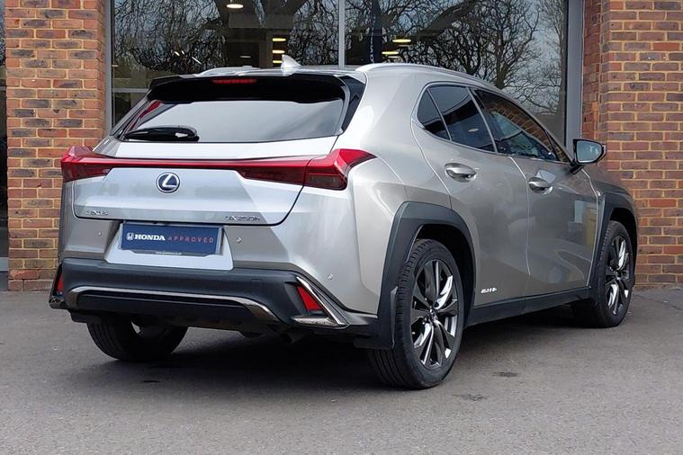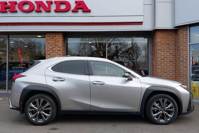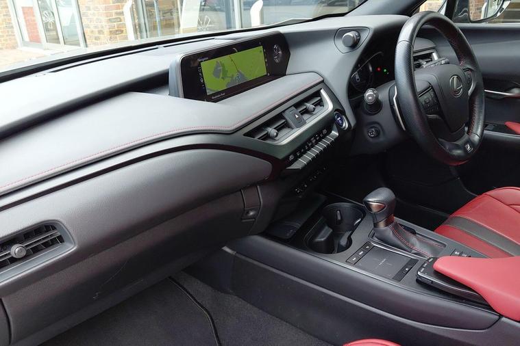 This 2021 Lexus UX 250h F Sport is a dealer approved vehicle, offering peace of mind. This stylish compact SUV features a 2.0 litre petrol hybrid engine, meeting Euro 6 emission standards. Inside, you'll find comfortable heated front seats and a helpful reversing camera with back guide lines to assist with parking.The Lexus UX 250h F Sport stands out with its impressive 0-62mph acceleration time of just 8.5 seconds, demonstrating its responsive performance. Furthermore, its placement in a low insurance group makes it a more economical choice for many drivers, indicating its value compared to similar vehicles..