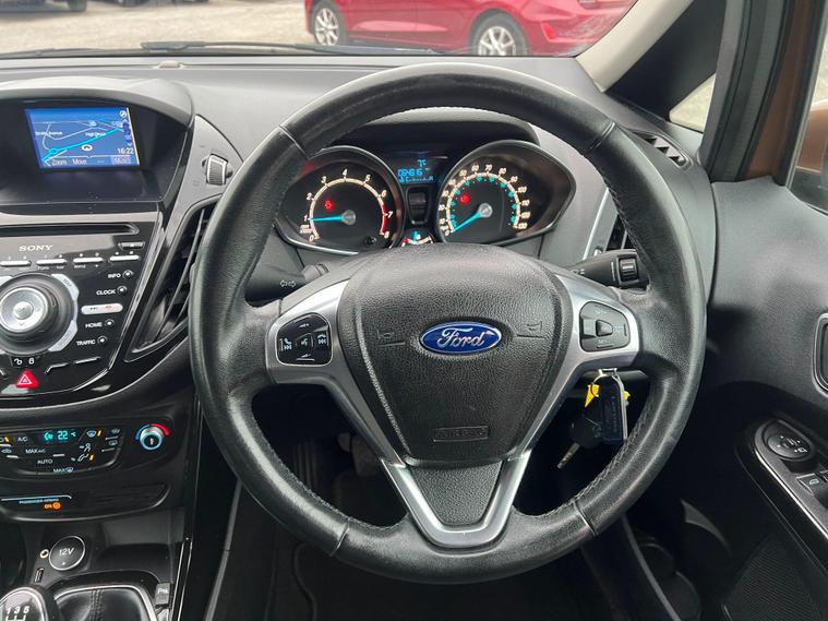 This 2015 Ford B-Max T Titanium boasts a full service history and has had only two owners, offering excellent provenance for this practical vehicle. Powered by an efficient 1.0L petrol engine, this Titanium trim model comes equipped with a premium Sony Navigation System featuring DAB radio and Ford SYNC, ensuring you stay connected and entertained. Comfort is further enhanced by Electronic Automatic Temperature Control for effortless climate control, while automatic headlights provide added convenience.The Ford B-Max T Titanium stands out with its impressive fuel economy, achieving a notable 55 miles per gallon, which indicates it is more economical than many similar vehicles. Its low CO2 emissions also contribute to a more environmentally friendly drive, and it sits in a low insurance group, suggesting that running costs are kept to a minimum, making it a sensible choice for many drivers..