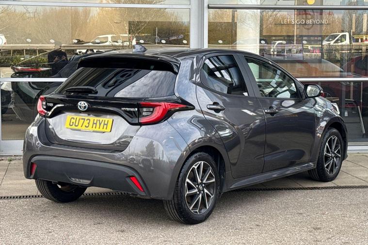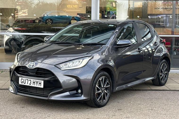 This 2023 Toyota Yaris VVT-h Design is a remarkable find, boasting exceptionally low mileage for its age with only 12134 miles covered and having had just one owner from new. This Euro 6 compliant model features a responsive 1.5L petrol hybrid engine, offering an impressive fuel economy of 69 mpg. The Design trim level comes equipped with a suite of intelligent features designed for comfort and safety, including automatic headlights with an LED front light guide, adaptive cruise control as part of the comprehensive Toyota Safety Sense 2 system, and seamless Bluetooth connectivity for all your devices.The Yaris VVT-h Design stands out with its low CO2 emissions, making it an environmentally conscious choice. The combination of its outstanding fuel efficiency, highlighted at 69 mpg, and the advanced Toyota Safety Sense 2 suite, which includes adaptive cruise control, clearly positions this vehicle as a superior option compared to similar models. This well maintained, single owner vehicle represents an excellent opportunity to own a modern, economical, and safe hatchback..