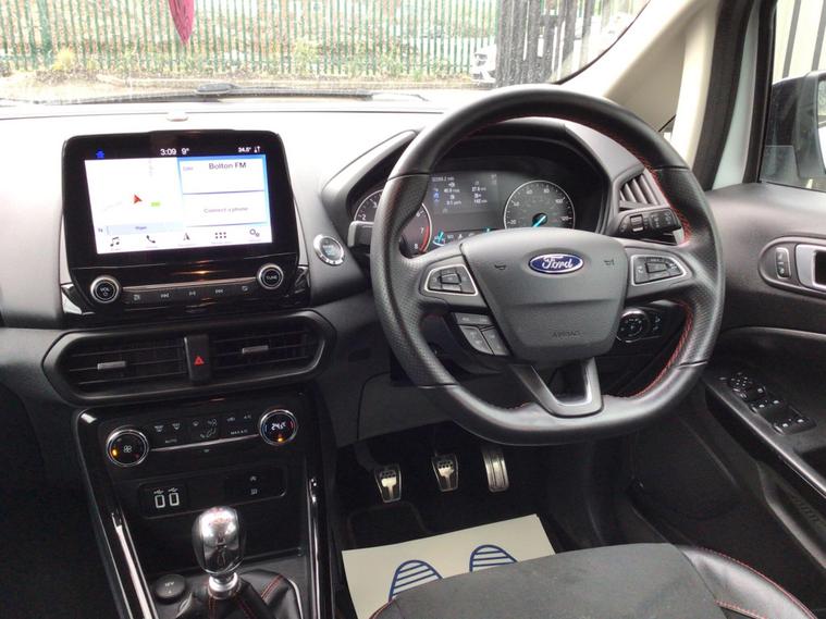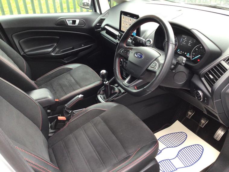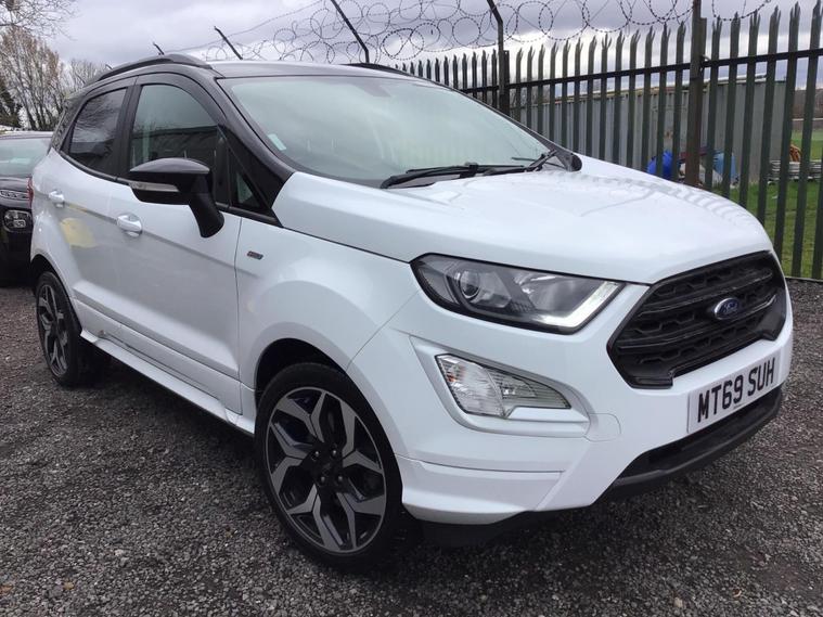 * * JUST ARRIVED, AWAITING VALET, MORE PICTURES COMING SOON * TOP PRICES PAID FOR PART EXCHANGES * LOW RATE FINANCE AVAILABLE * APPLE CAR PLAY/ANDROID AUTO * SAT NAV * REVERSING CAMERA * 18'' BLACK/DIAMOND CUT ALLOYS * HALF BLACK LEATHER WITH RED STITCHING * ULEZ COMPLIANT * * JUST ARRIVED IN STOCK WE HAVE THIS STUNNING TOP SPEC 2019 69 FORD ECOSPORT 1.0 ECOBOOST ST-LINE (Euro 6) IN WHITE WITH ONLY 32, 000 MILES & FULL SERVICE HISTORY!! ONLY 1 FORMER OWNER, THIS CAR IS READY TO BE DRIVEN AWAY, IS FULLY HPI CHECKED/CLEAR & COMES WITH MOT UNTIL SEPTEMBER (12 months available on purchase) & 2 KEYS, OTHER EXTRAS INCLUDE; TINTED REAR WINDOWS, CRUISE CONTROL, KEYLESS START, COLOUR TOUCHSCREEN MULTIMEDIA SYSTEM, AMBIENT LIGHTING, REAR PARKING SENSORS WITH DIGITAL PARK ASSIST, 6 SPEED GEARBOX, Air con/Digital climate control, Alarm/Immobiliser, Automatic lights & wipers, Bluetooth, Black trim, Child locks, Cup holders, Electric windows x 4, Electric power folding mirrors, Foglamps, Front armrest, Heated screen, Isofix, Lumbar support, Multi function steering wheel, Power steering, Remote locking, Roof rails, Sports seats, Stop/Start, Traction control, Trip computer, Tyre pressure monitoring system, Voice recognition, HUGE SPEC, LOW MILEAGE, LOOKS AMAZING IN WHITE WITH BLACK ROOF/TRIM, ABSOLUTELY IMMACULATE, RUNS & DRIVES PERFECT, LOW INSURANCE, READY TO GO, PART EXCHANGE WANTED/WELCOME - WE WILL BEAT WEBUYANYCAR & MOTORWAY PRICES!! WE CAN SAVE YOU THE FAFF & ARRANGE LOW RATE FINANCE FOR YOU - GIVE US A CALL FOR MORE INFO!! * * PLEASE NOTE : THE CHEPAEST WAY TO PURCHASE THIS CAR IS THROUGH US DIRECTLY. PLEASE CALL. THE INVOLVEMENT OF ANY 3RD PARTY FINANCE COMPANY WILL LIKELY INCUR ADDITIONAL ADMIN FEES * * WARRANTY INCLUDED, FREE DELIVERY AVAILABLE, T's & C's APPLY.