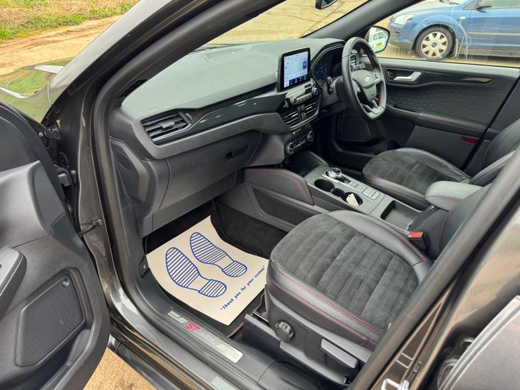The ''Ford Kuga 2.5 EcoBoost Duratec 14.4kWh ST-Line CVT'' is a specific model of the Ford Kuga plug-in hybrid SUV, featuring a 2.5-liter petrol engine combined with an electric motor and a 14.4kWh battery. The ''ST-Line'' indicates a sportier trim level, while ''CVT'' signifies a Continuously Variable Automatic transmission. This model delivers a combined power output of around 225-243 PS and has an electric-only range of up to 39-41 milesDiscover this 2021 Ford Kuga ST-Line, a 2.5 litre petrol plug-in hybrid that offers an exceptional blend of performance and efficiency. This Euro 6 compliant model is presented in the sporty ST-Line trim, ensuring a dynamic driving experience. Inside, you'll appreciate the comfort provided by the Dual-Zone Electronic Automatic Temperature Control, allowing both driver and passenger to set their preferred climate. For your convenience, the Ford Key Free System grants keyless entry and start, while the automatic on-off headlights ensure you always have optimal visibility, comes with a long Mot , and the following services 10/09/2025 60873 SERVICE INVOICE04/12/2024 50382 SERVICE INVOICE , 09/02/2024 39286 SERVICE INVOICE , 25/07/2022 12150 SERVICE INVOICE , and 2 keys .This Kuga ST-Line stands out with its premium features, including a Bang and Olufsen sound system for an immersive audio experience and wireless phone charging to keep you connected on the go. These notable features, combined with its plug-in hybrid technology and low insurance group, position this vehicle as a superior choice compared to other similar models. It represents a smart and stylish option for those seeking a modern and well-equipped SUV..