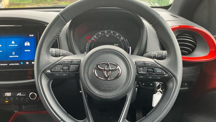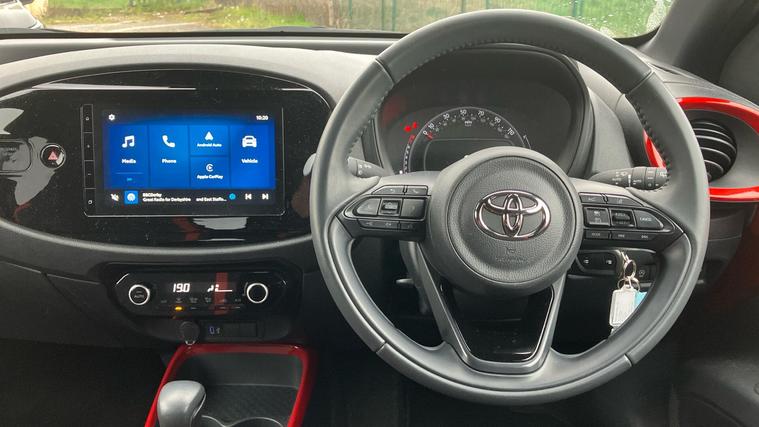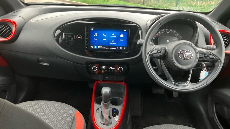 This 2024 Toyota Aygo X VVT-i Edge is a Toyota manufacturer approved vehicle with a full service history and only one owner from new, offering you complete peace of mind. This stylish Edge trim model is powered by an efficient 1.0L Petrol engine, meeting Euro 6 emissions standards. It comes equipped with a useful reversing camera for easier parking, automatic headlights that adjust to light conditions, and Bluetooth connectivity for seamless phone integration. Inside, you'll find automatic air conditioning to keep you comfortable and Toyota Safety Sense, which includes adaptive cruise control for relaxed journeys.The Aygo X VVT-i Edge stands out with its impressive fuel economy, achieving up to 57 miles per gallon, which indicates it is more economical than many similar vehicles. Furthermore, its low insurance group and low CO2 emissions highlight its cost effectiveness and environmental consideration compared to other cars in its class. This particular Aygo X also benefits from a 12 month warranty, ensuring your ownership experience is worry free..