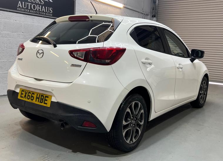 With an MOT valid until September 2026 and a clear vehicle history check, this 2016 Mazda Mazda2 SKYACTIV-G Sport Nav offers excellent peace of mind. This 1.5L petrol model, finished in the Sport Nav trim, has been well maintained with its last service at 56, 162 miles on March 5th, 2026, and has had only two owners. It comes equipped with desirable features such as climate control air conditioning, smart keyless entry, dusk sensing automatic headlights, an integrated Bluetooth system for seamless connectivity, and rear parking sensors to assist with manoeuvring.This Mazda2 stands out with its impressive fuel economy, achieving a remarkable 63 miles per gallon, and benefits from low CO2 emissions, making it an economical choice. Its performance is also noteworthy, with an acceleration of 0-62mph in just 9.4 seconds, demonstrating a responsive driving experience that surpasses many other vehicles in its class. This Euro 6 compliant model combines efficiency, practicality, and a touch of sporty appeal..