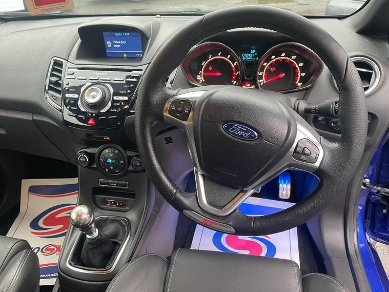 This 2017 Ford Fiesta ST-3 is presented with a clear vehicle history check and will come with a full 12 months MOT for your peace of mind. This sporty hatchback features a 1.6 litre Euro 6 compliant petrol engine, offering an engaging driving experience. The ST-3 trim level includes the desirable ST Style Pack, enhancing its already dynamic appearance. Practicality is also considered with an adjustable boot load floor and rear parking sensors to aid manoeuvring. Keyless entry adds a touch of modern convenience, allowing you to unlock and start the car without needing to take the key out of your pocket.The performance of this Fiesta ST-3 is a standout feature, capable of accelerating from 0 to 62 miles per hour in just 6.9 seconds. This brisk acceleration demonstrates how this particular model offers a more spirited performance compared to many other vehicles in its class. The combination of its sporty design, responsive engine, and thoughtful features makes this Ford Fiesta ST-3 a compelling choice for those seeking an exciting and well equipped compact car..