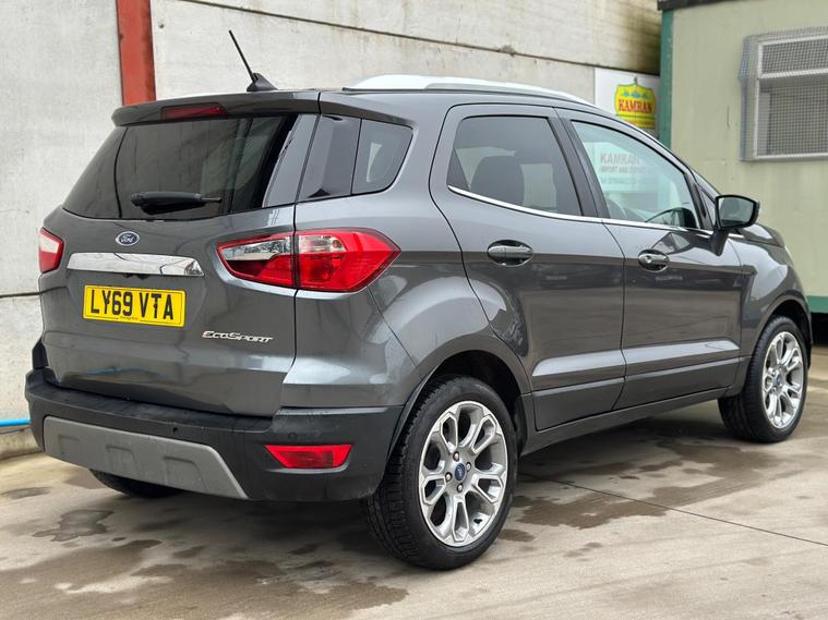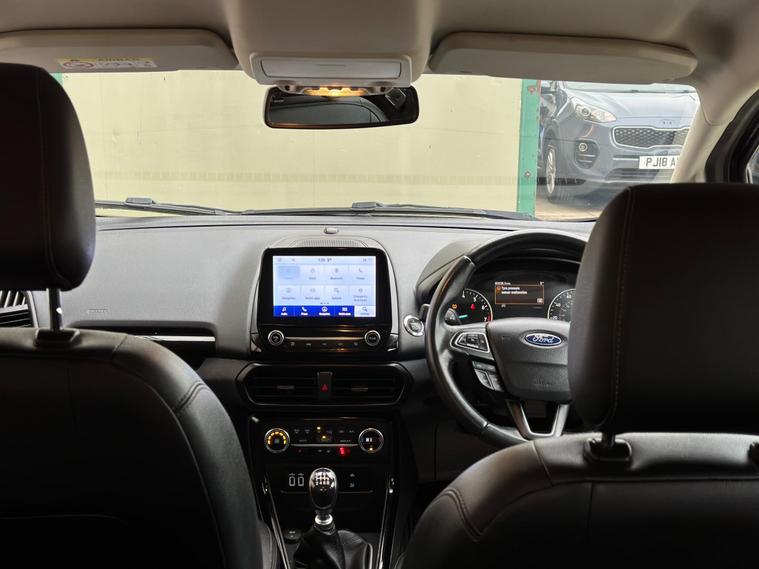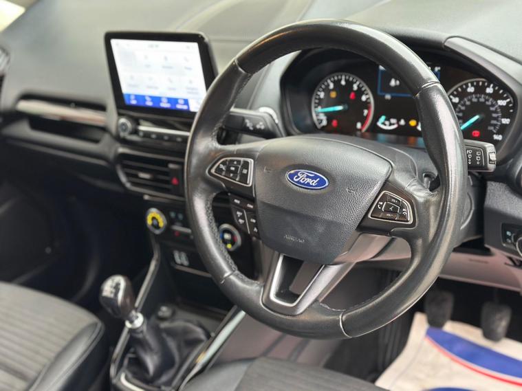 This 2020 Ford EcoSport T Titanium is a well maintained example of this popular compact SUV. Powered by an efficient 1.0L petrol engine, this Euro 6 compliant model offers a compelling blend of practicality and technology. Inside, you will find a host of desirable features designed to enhance your driving experience, including front and rear parking sensors with a rear view camera to assist with manoeuvring, and the Ford SYNC 3 navigation system complete with an 8 inch touchscreen that seamlessly integrates with both Android Auto and Apple CarPlay. Comfort is assured with electronic automatic air conditioning, ensuring a pleasant cabin temperature in all conditions.The Ford EcoSport T Titanium stands out with its impressive fuel economy, achieving a highlight of 48 miles per gallon, which indicates it is more economical than many other vehicles in its class. Furthermore, its low CO2 emissions demonstrate a commitment to environmental consideration. This combination of efficient performance, advanced technology, and practical features makes the 2020 Ford EcoSport T Titanium a sensible choice for those seeking a versatile and well equipped vehicle..