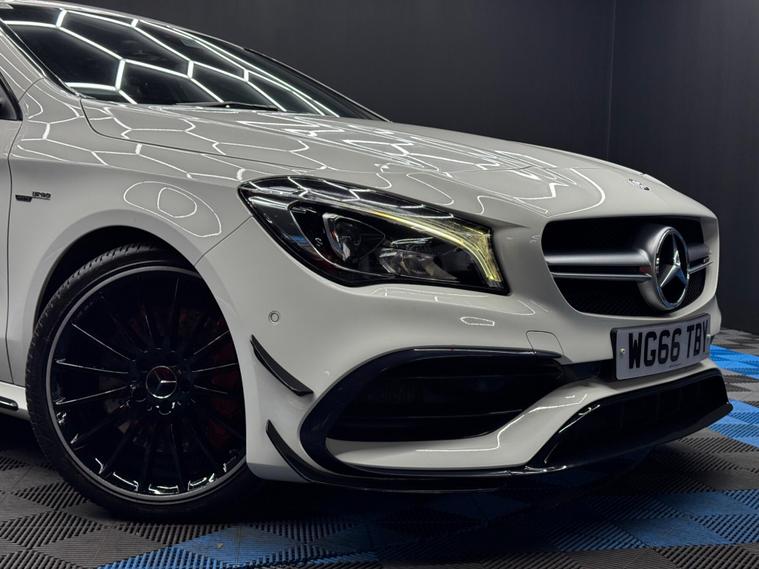 Here at Motor Gurus we are delighted to offer a Mercedes-Benz CLA 2.0 CLA45 AMG Coupe SpdS DCT 4MATIC. This vehicle is in immaculate condition inside and out. This specific vehicle is finished in a GLOSS WHITE and is contrasted by a BLACK PART LEATHER interior. This vehicle comes included with: FRONT & REAR PARKING SENSORS, MERCEDES AMG AERO PACKAGE, AMG SPORTS EXHAUST SYSTEM, RECARO BUCKET SEATS, ALCANTARA GRIPPED STEERING WHEEL, CRUISE CONTROL, AUTOMATIC HEADLIGHT CONTROL, TWIN CUPHOLDERS, CLIMATE CONTROL, SAT NAVIGATION, BLUETOOTH AUDIO, TELEPHONE CONNECTIVITY, DAB RADIO AND MUCH MORE! Our Mercedes-Benz CLA 2.0 CLA45 AMG Coupe SpdS DCT 4MATIC has come to us with LOTS OF SERVICE HISTORY and will also come provided with a 12 MONTH MOT as well as a FRESH OIL SERVICE before it leaves our premises (OTR)..