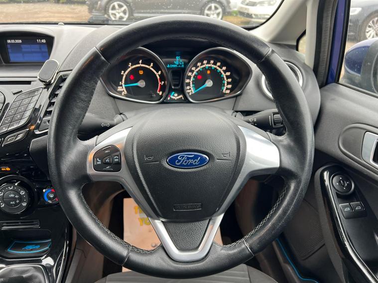 This 2015 Ford Fiesta Zetec is a great choice for those seeking an economical and well equipped car. Powered by a 1.25 litre petrol engine and meeting Euro 6 emissions standards, this model offers a blend of efficiency and performance. It comes with desirable features such as manual air conditioning to keep you comfortable on every journey and Bluetooth hands free phone connectivity, allowing you to stay connected safely.The Ford Fiesta Zetec is known for its affordability, and this particular model benefits from a low insurance group, indicating it is more cost effective to insure than many comparable vehicles. This makes it an attractive option for new drivers or anyone looking to reduce their running costs without compromising on practicality or modern conveniences..