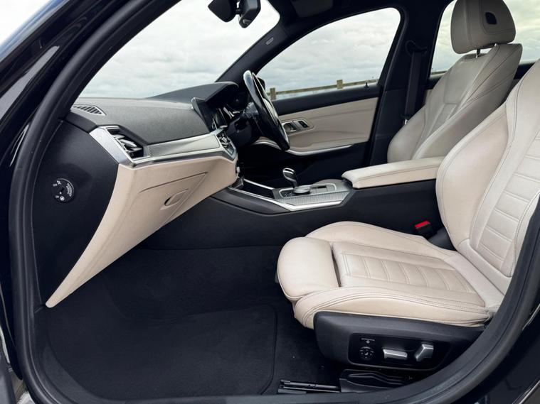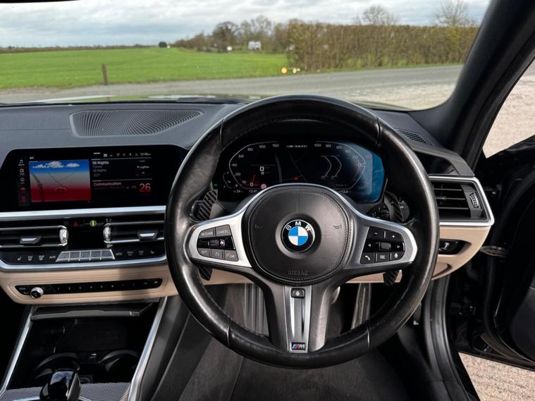 Boasting a full dealership service history with its last service completed on 27 August 2025 at 67, 692 miles, this 2021 BMW 3 Series M340i represents excellent provenance. This four wheel drive saloon is powered by a 3.0 litre petrol hybrid engine, meeting Euro 6 emissions standards. It comes equipped with the desirable Comfort Plus Package, featuring memory seats and a heated steering wheel, alongside the Visibility Pack which includes LED and Laser headlights. Further enhancing the driving experience are the Technology Plus Pack and a premium Harman Kardon loudspeaker system.This BMW 3 Series M340i offers impressive performance, achieving 0 to 62 miles per hour in just 4.4 seconds, a highlight that sets it apart from many similar vehicles. Its low insurance group rating also indicates a more economical ownership proposition compared to other cars in its class..