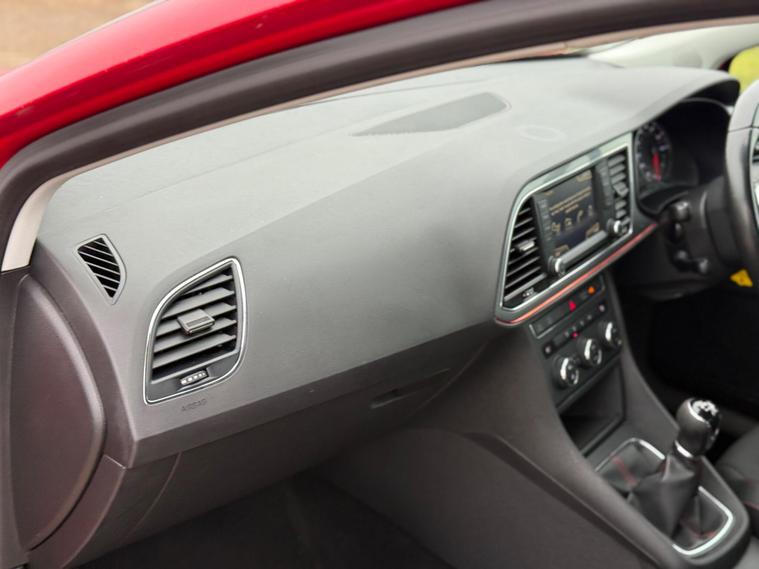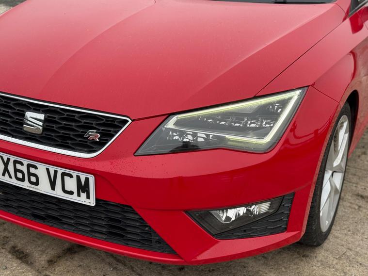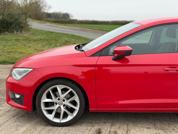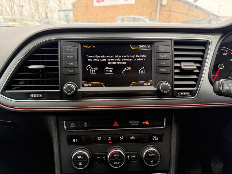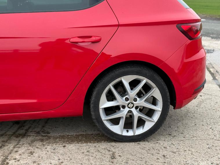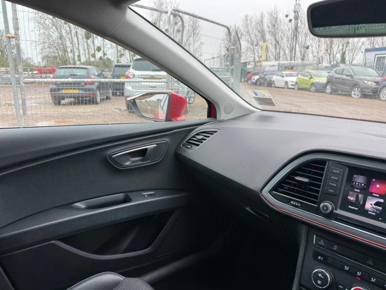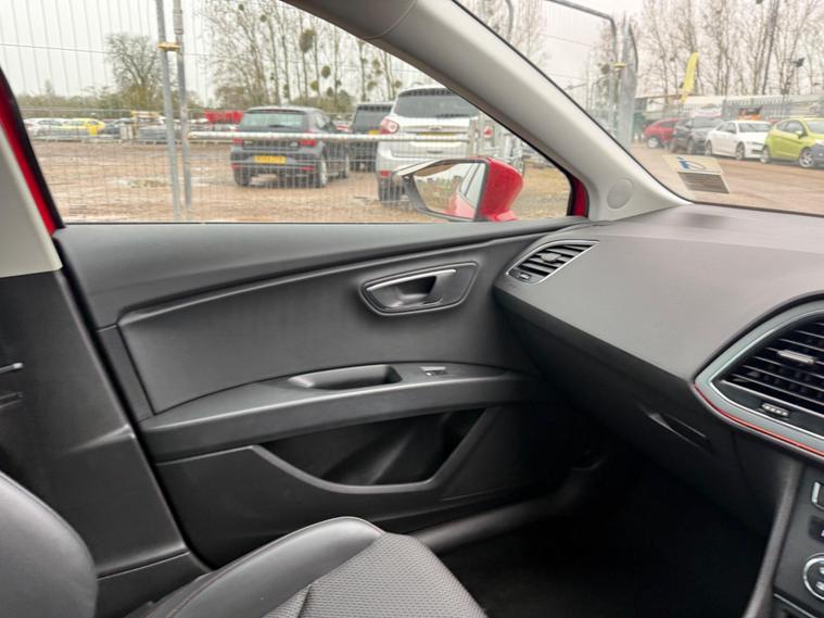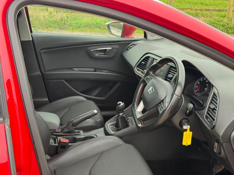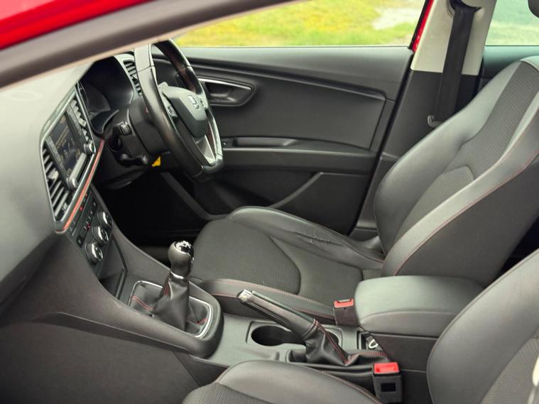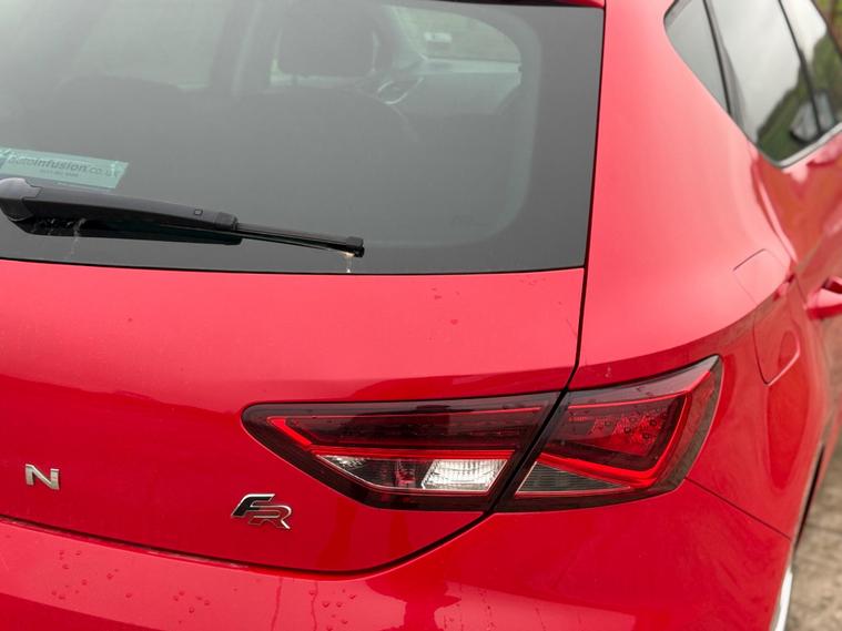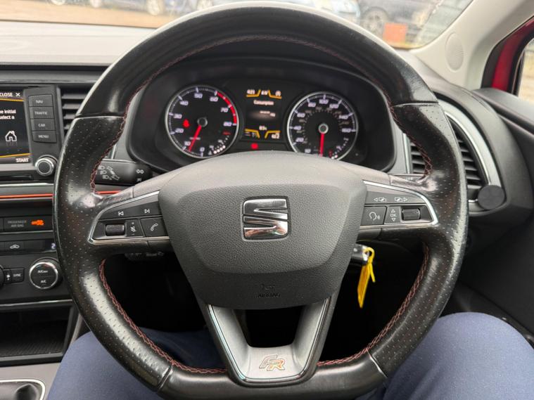 - Steering Wheel - Flat-Bottomed Perforated Leather with Red Stitching and FR Logo