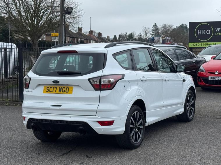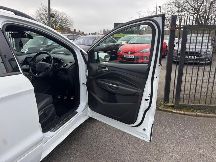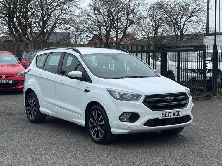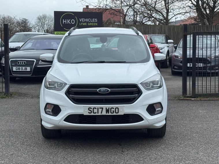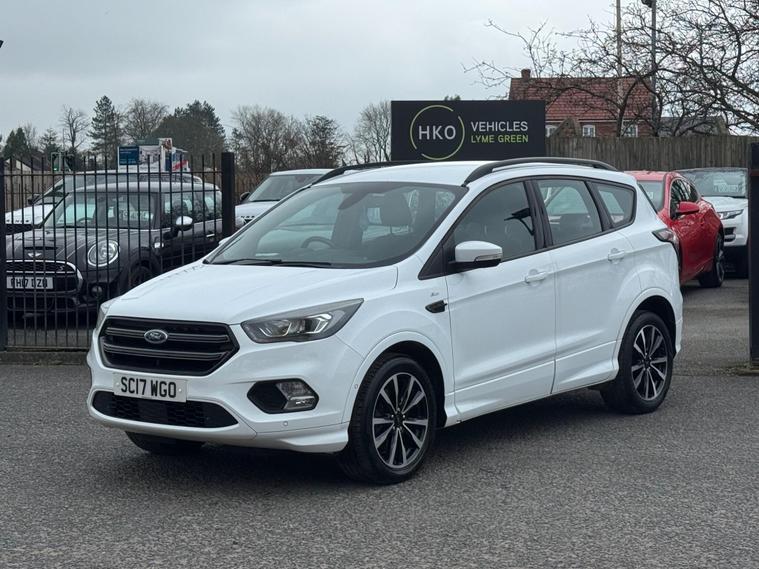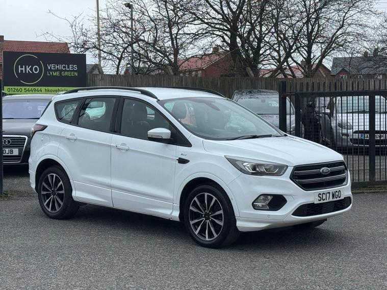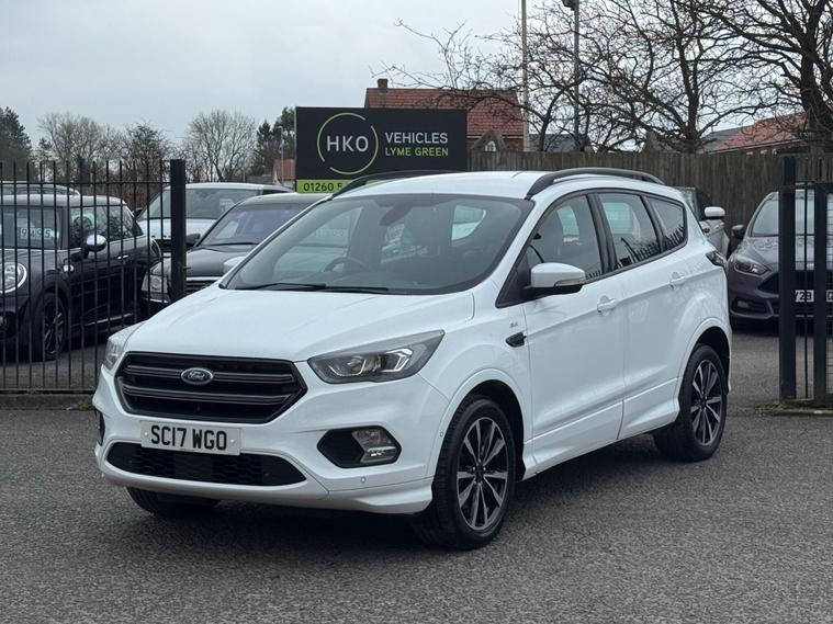 Welcome to HKO Vehicles Lyme Green – we are pleased to offer this stylish and practical 2017 Ford Kuga 2.0 TDCi EcoBlue ST-Line, finished in crisp white and presented in excellent condition. The Kuga is a popular family SUV known for its comfort, strong driving dynamics, and practicality, and this ST-Line model adds a sporty edge with enhanced styling and specification.This vehicle has covered 81, 000 miles and is powered by the reliable and efficient 2.0 TDCi EcoBlue diesel engine producing 150ps, paired with a manual gearbox, delivering strong performance with excellent fuel economy. Being Euro 6 compliant, it meets modern emission standards.As the sporty ST-Line specification, this Kuga benefits from a great level of factory equipment and distinctive styling, including: • ST-Line body styling package • ST-Line alloy wheels • Sports interior with part leather trim • Sports seats • Touchscreen infotainment system • Satellite navigation • Bluetooth connectivity • Cruise control and speed limiter • Dual zone climate control • Rear parking sensors • Keyless start • Multi-function sports steering wheel • LED daytime running lights • Electric folding mirrorsThe ST-Line trim gives this Kuga a more dynamic look and feel while maintaining the comfort and practicality that makes it such a great all-round SUV.This vehicle will be supplied with a 12 Months MOT and includes a 3 Months Warranty for added peace of mind.We are proud to be an AA Approved Dealer, ensuring every vehicle is thoroughly inspected and prepared to the highest standard prior to sale.Finance available via our website or call us on (01260) 544944 to discuss a tailored finance package to suit your needs.A great opportunity to own a well-presented and well-equipped Ford Kuga ST-Line Diesel, offering sporty styling, comfort, and everyday practicality. Contact HKO Vehicles Lyme Green today to arrange a viewing or test drive..