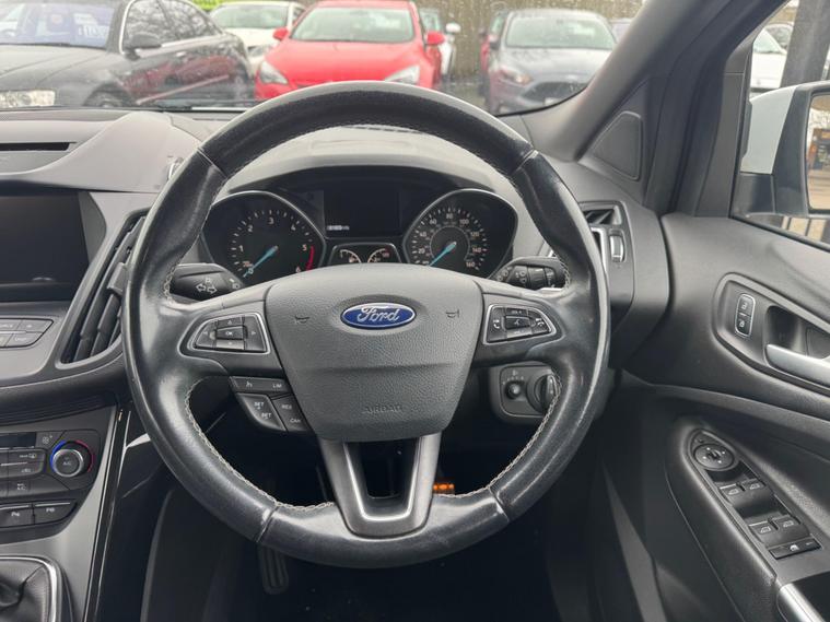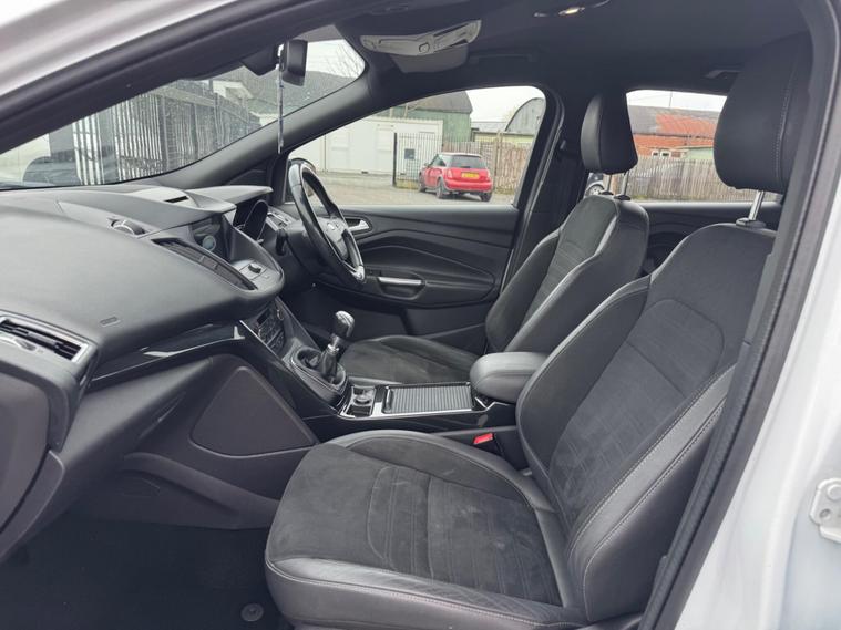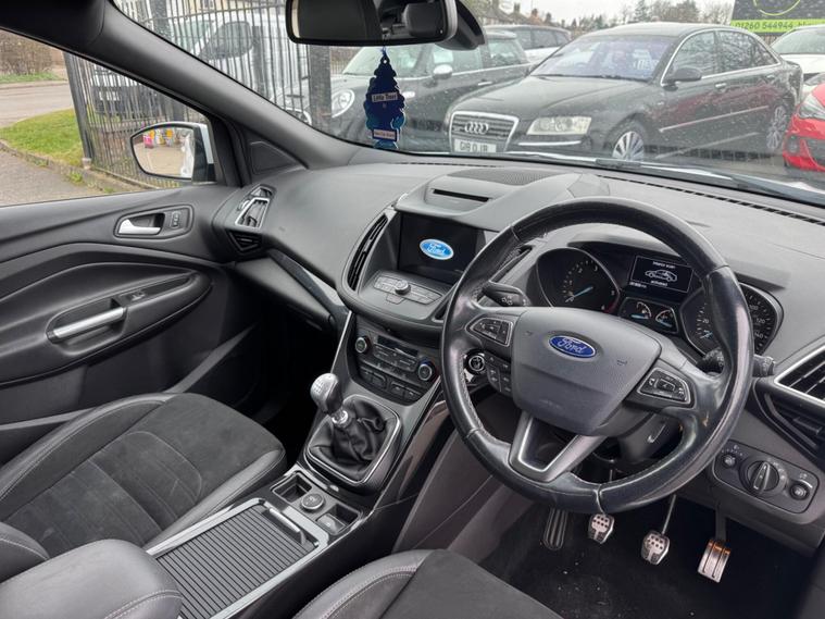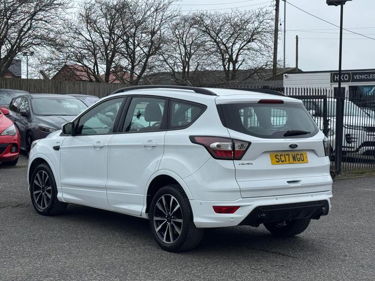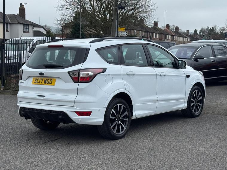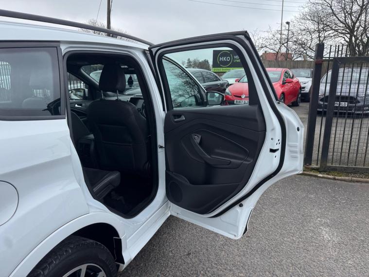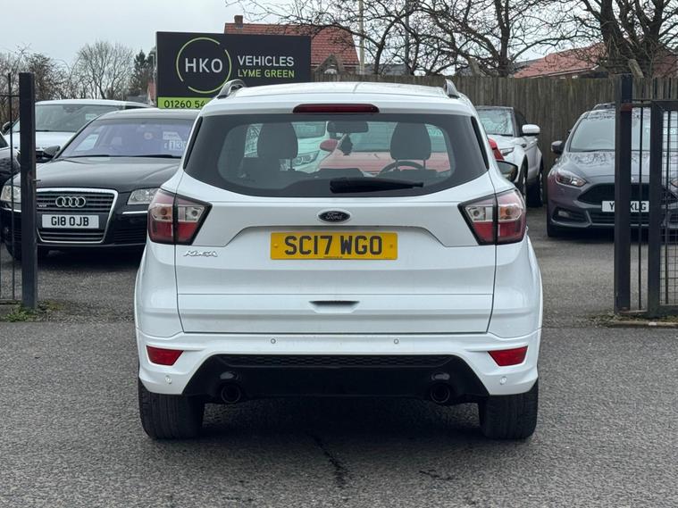 Welcome to HKO Vehicles Lyme Green – we are pleased to offer this stylish and practical 2017 Ford Kuga 2.0 TDCi EcoBlue ST-Line, finished in crisp white and presented in excellent condition. The Kuga is a popular family SUV known for its comfort, strong driving dynamics, and practicality, and this ST-Line model adds a sporty edge with enhanced styling and specification.This vehicle has covered 81, 000 miles and is powered by the reliable and efficient 2.0 TDCi EcoBlue diesel engine producing 150ps, paired with a manual gearbox, delivering strong performance with excellent fuel economy. Being Euro 6 compliant, it meets modern emission standards.As the sporty ST-Line specification, this Kuga benefits from a great level of factory equipment and distinctive styling, including: • ST-Line body styling package • ST-Line alloy wheels • Sports interior with part leather trim • Sports seats • Touchscreen infotainment system • Satellite navigation • Bluetooth connectivity • Cruise control and speed limiter • Dual zone climate control • Rear parking sensors • Keyless start • Multi-function sports steering wheel • LED daytime running lights • Electric folding mirrorsThe ST-Line trim gives this Kuga a more dynamic look and feel while maintaining the comfort and practicality that makes it such a great all-round SUV.This vehicle will be supplied with a 12 Months MOT and includes a 3 Months Warranty for added peace of mind.We are proud to be an AA Approved Dealer, ensuring every vehicle is thoroughly inspected and prepared to the highest standard prior to sale.Finance available via our website or call us on (01260) 544944 to discuss a tailored finance package to suit your needs.A great opportunity to own a well-presented and well-equipped Ford Kuga ST-Line Diesel, offering sporty styling, comfort, and everyday practicality. Contact HKO Vehicles Lyme Green today to arrange a viewing or test drive..