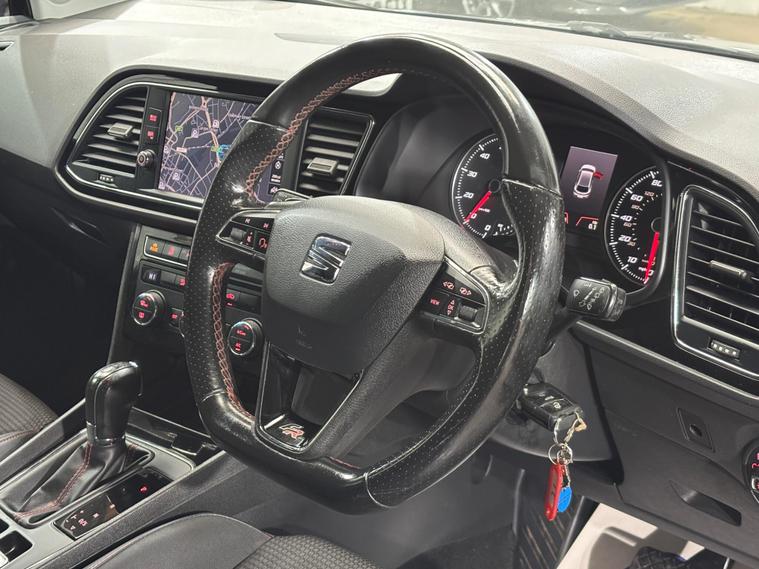 - Steering Wheel - Flat-Bottomed Perforated Leather with Red Stitching and FR Logo