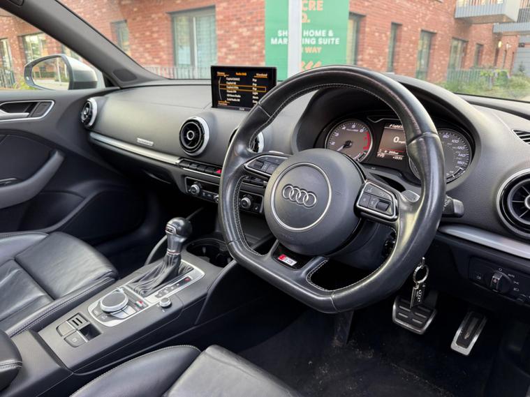 This 2015 Audi S3 TFSI boasts a clear vehicle history and has had only two owners, offering peace of mind for its next custodian. Under the bonnet, a powerful 2.0 litre petrol engine paired with four wheel drive delivers an engaging driving experience, all while meeting Euro 6 emissions standards. Inside, you'll find comfort and convenience with heated front seats, dual zone electronic climate control, and the practical addition of mobile telephone preparation via a Bluetooth interface. The Bi-Xenon Plus headlights ensure excellent visibility in all conditions.The Audi S3 TFSI stands out with its impressive acceleration, capable of reaching 0-62mph in just 4.9 seconds, a performance metric that places it ahead of many comparable vehicles. This rapid acceleration, combined with its sophisticated four wheel drive system, provides a dynamic and responsive drive. Furthermore, the generous boot space ensures that practicality is not compromised, making this Audi S3 a well rounded choice for those seeking both performance and everyday usability..