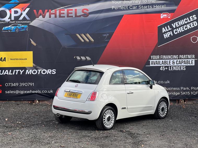 A stylish and economical Fiat 500 Lounge with just one owner and low mileage for its age. Powered by the reliable 1.2 petrol engine, this model offers great fuel efficiency along with the premium features of the Lounge trim, making it an ideal compact city car. Condition: Immaculate 1 Owner, PANORAMIC ROOF HPI Clear / ULEZ Compliant ✅MOT 16/07/2026 & Full service History2 KeysDriver Assistance & SafetyRear Parking SensorsHill Start AssistElectronic Stability Control (ESC)Tyre Pressure Monitoring SystemISOFIX Child Seat Mounting PointsInterior & Key FeaturesPanoramic Glass RoofAir ConditioningBlue&Me Bluetooth ConnectivityUSB & AUX InputLeather Multifunction Steering WheelHeight Adjustable Driver SeatElectric Front WindowsSplit Folding Rear SeatsTrip Computer / Driver Information DisplayChrome Interior TrimDue to high demand, early booking of viewings is recommended. Arrange yours via our website https:/ dealer's website or by calling +44 (0)7349390791Our friendly team will look after you before, during and after the sales. We will help you with taxing the vehicle, completing official forms, and we will make sure that you, your family and loved ones are safe on the road. We also offer a wide range of warranties and finance to meet your needs. WHO WE AREWe are a car dealership with 16 years of experience, based in Clarence Street, Stalybridge, SK15 1QF. We are 100% sure that we can find you the right vehicle as we offer over 150 cars for sale at any time. OUR QUALITY PROMISE- Every car comes with our FREE 3 Months warranty- We offer a fresh MOT for all vehicles due for one within the next 3 months. - All our vehicles are HPI Clear and undergo a 39-Point check, conducted by professional inspectors. - Every vehicle is valeted and sanitised to a high standard. - We are able to offer delivery nationwide at competitive prices, don't hesitate to contact us for a quote.FINANCE, PART EXCHANGE OR A STRAIGHT PURCHASE IS AVAILABLE. QPX Wheels Team.https:/ dealer's website