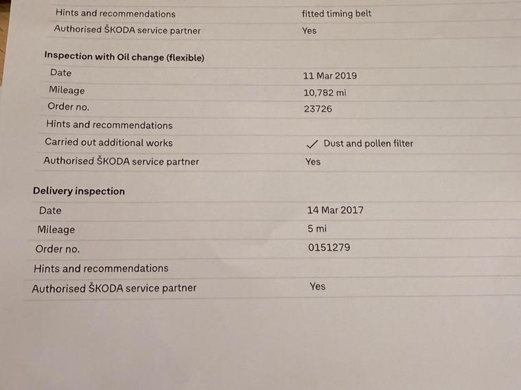 FULL SKODA SERVICE HISTORY.
