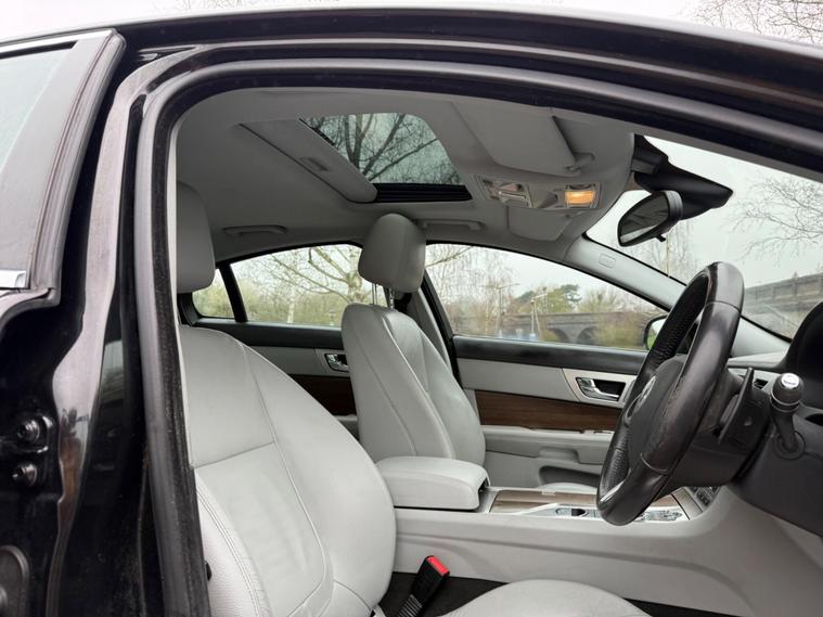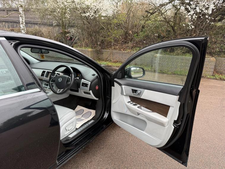 This 2013 Jaguar XF d Luxury presents an exceptional ownership proposition with only two previous owners and a remarkably low mileage of 93, 276 miles for its age. This elegant saloon is powered by a 2.2 litre diesel engine, offering a compelling blend of performance and efficiency. The Luxury trim level ensures a refined driving experience, complemented by features such as rear parking aid with rear sensors, making manoeuvring easier. Stay connected on the go with Bluetooth connectivity, and enjoy consistent comfort thanks to the dual zone climate control. The XF also boasts automatic headlights that switch on when needed, and striking LED signature lights with daytime running functionality.The Jaguar XF d Luxury stands out with its impressive fuel economy, achieving a highlight of 58 miles per gallon, which indicates it is more economical than many similar vehicles. Furthermore, the generous boot space provides ample room for luggage or shopping, making it a practical choice for everyday use and longer journeys. This combination of Jaguar's renowned luxury, efficient diesel power, and thoughtful features makes this XF a distinguished option in the used car market..