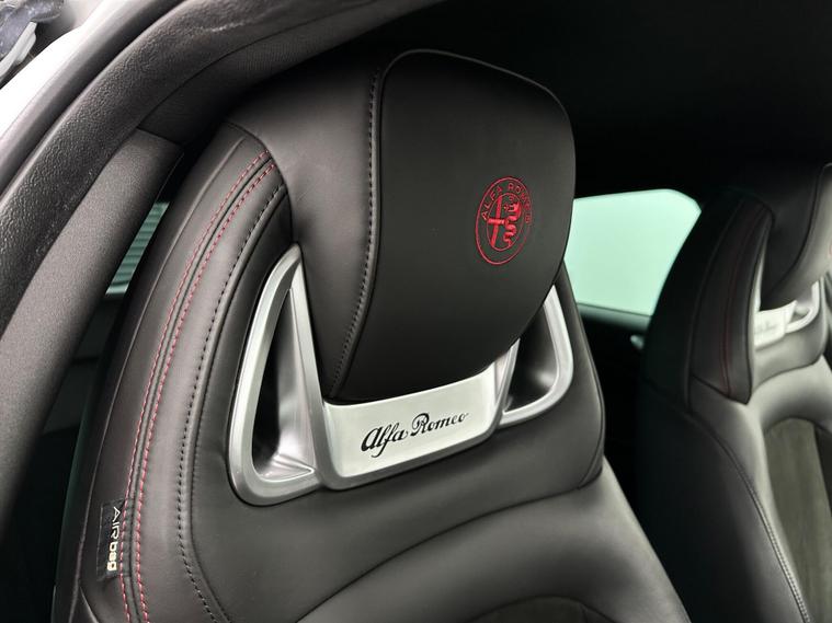 - Leather and Alcantara with Alfa Romeo Logo - Black with Red Stitching