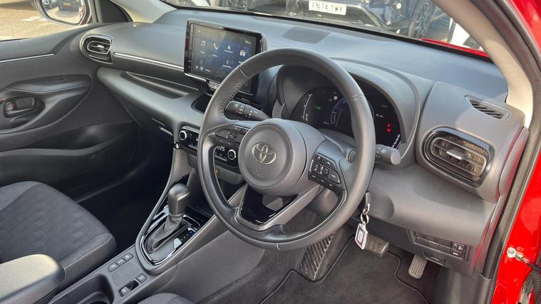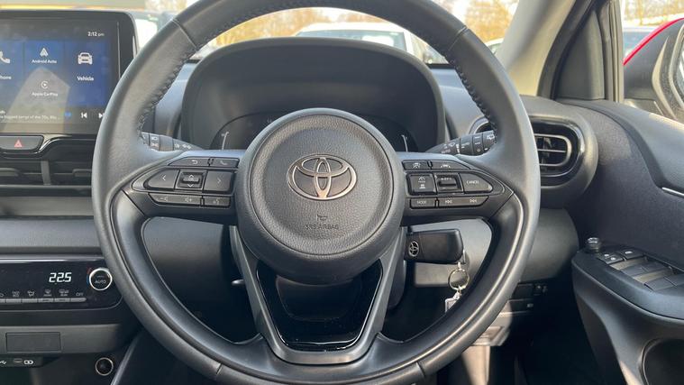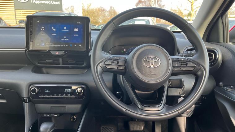 This 2025 Toyota Yaris VVT-h Design is a truly exceptional example, boasting a single owner from new and an incredibly low mileage of just 4920 miles. As a Toyota manufacturer approved vehicle, it comes with the reassurance of a 12 month warranty and a full service history, ensuring peace of mind for its next owner. This stylish hatchback is powered by an efficient 1.5L Petrol Hybrid engine, meeting Euro 6 emission standards and contributing to its low CO2 emissions.The Design trim level offers a host of desirable features, including automatic headlights with an LED front light guide and LED headlights for enhanced visibility. Parking is made easier with a reversing camera, and you can stay connected on the go thanks to smartphone integration with Apple CarPlay and Android Auto. These features collectively demonstrate how this Yaris offers a superior driving experience compared to other vehicles in its class, combining advanced technology with practicality and efficiency..