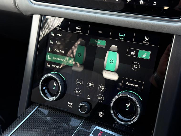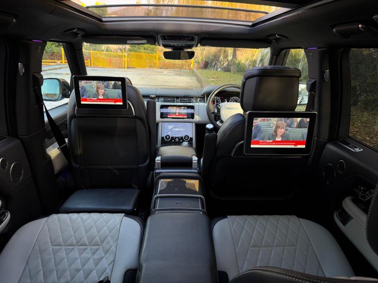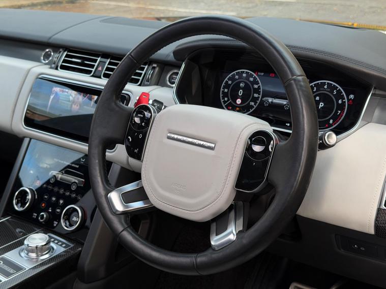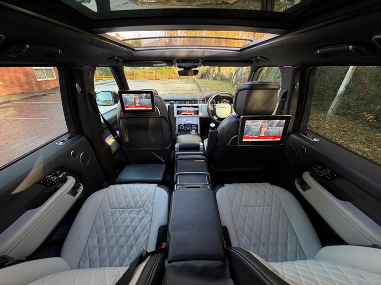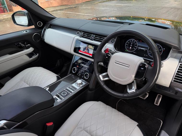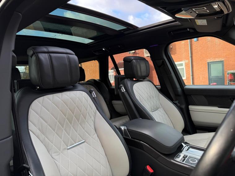 This Range Rover 5.0 P565 V8 SV Autobiography Dynamic Finished in Santorini Black and This Vehicle Comes With The Following Specification: 22in Alloy Wheels - 5 Split Spoke Style 5087 with Diamond Turned Finish | Quilted Semi Aniline Perforated Leather - Ebony & Cirrus | Head Up Display | Signature Entertainment Package | Rear Seat Entertainment - 10in Screens | 24-way Heated and Cooled Hot-Stone Massage Front Seats with Executive Class Comfort-Plus Rear Seats | 360 Degree Parking Aid | 360 Degree Surround Camera System | Adaptive Cruise Control with Steering Assist |Android Auto | Apple CarPlay | Towing Pack (Deployable Towbar) | Domestic Plug Socket | Configurable Ambient Interior Lighting | Glass Panoramic Roof |Lane Keep Assist | Meridian Signature Sound System | Navigation Pro | Soft Door Close | Full Land Rover Service History | 2 Keys.