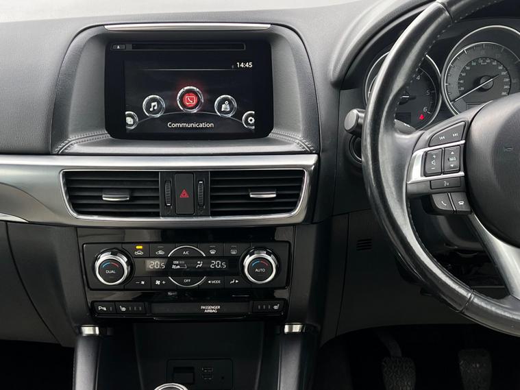 This 2016 Mazda CX-5 SKYACTIV-D Sport Nav is a well equipped diesel SUV. It features a 2.2 litre Euro 6 compliant engine and comes in the Sport Nav trim. Notable features include LED headlights, smart keyless entry, dusk sensing automatic headlights, a driver's seat with memory function, and dual zone climate control for your comfort.This CX-5 offers excellent running costs, achieving an impressive 61 miles per gallon, which is better than many similar vehicles. It also benefits from a low insurance group, making it more affordable to own. You will appreciate the generous boot space, ideal for luggage or shopping, and its low CO2 emissions further contribute to its economical profile..