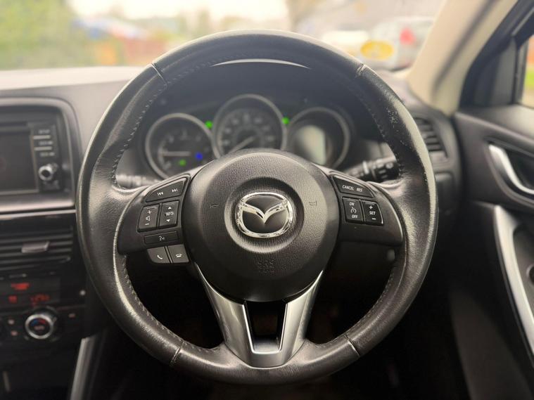 This 2014 Mazda CX-5 SKYACTIV-D SE-L Nav is presented with a clear vehicle history check and will come with a 12 month MOT for your peace of mind. This Four Wheel Drive model is equipped with a 2.2 litre diesel engine and meets Euro 6 emissions standards. For added reassurance, a 3 month warranty is included.This CX-5 SE-L Nav boasts a dual zone climate control air conditioning system and an integrated Bluetooth system for your convenience. Parking is made easier with both front and rear parking sensors, while dusk sensing automatic headlights provide enhanced visibility. You will also appreciate the large boot space, making it ideal for all your needs. This model benefits from a low insurance group and impressive fuel economy of 51 miles per gallon, setting it apart from many other vehicles in its class..