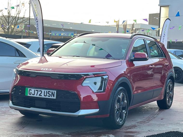 SELECT MOTORS (GB) IS DELIGHTED TO OFFER YOU THIS AMAZING KIA NIRO ELECTRIC 5DR IN RED COLOUR AND COMPLEMENTED WITH 17IN ALLOY WHEELS. THIS VEHICLE HAS A HUGE SPECIFICATION WHICH INCLUDES THE FOLLOWING; CARPLAY FOR IPHONE AND ANDROID AUTOS, REVERING CAMERA WITH SENSORS, BLUETOOTH CONNECTIVITY FOR PHONE AND MEDIA, DAB-FM/AM RADIO, DUAL ZONE AUTOMATIC AIR CONDITIONING, 8IN TOUCHSCREEN, ADAPTIVE SMART CRUISE CONTROL WITH STOP AND GO FUNCTIONALITY, LANE DEPARTURE WARNING SYSTEM, TRACTION CONTROL, AUTO HEADLIGHTS, ELECTRONIC PARKING BRAKE, LED FRONT FOG LIGHTS, LED DAYTIME RUNNING LIGHTS, TYRE PRESSURE WARNING SYSTEM. THIS VEHICLE IS ULEZ EXEMPT. WE ARE OFFERING NATIONWIDE DELIVERY ON ALL VEHICLE (PLEASE GET IN TOUCH DIRECTLY FOR DETAILS). WE CAN ALSO CONDUCT VIRTUAL VIEWINGS AND ACCOMMODATE ANY REQUESTS YOU MAY HAVE. ALL OUR ADVERTISED STOCK IS TEST-DRIVEN, INSPECTED BY OUR MECHANIC TO MAKE SURE OUR CUSTOMERS DRIVE AWAY WITH THE BEST QUALITY CARS. WE CAN PROVIDE A VIDEO WALK AROUND THIS VEHICLE UPON REQUEST., ALL OF OUR VEHICLES ARE SUPPLIED WITH A 3 MONTHS WARRANTY WITH EXTENDED OPTION. 12 MONTHS FREE AA BREAKDOWN COVER. FINANCE AVAILABLE.