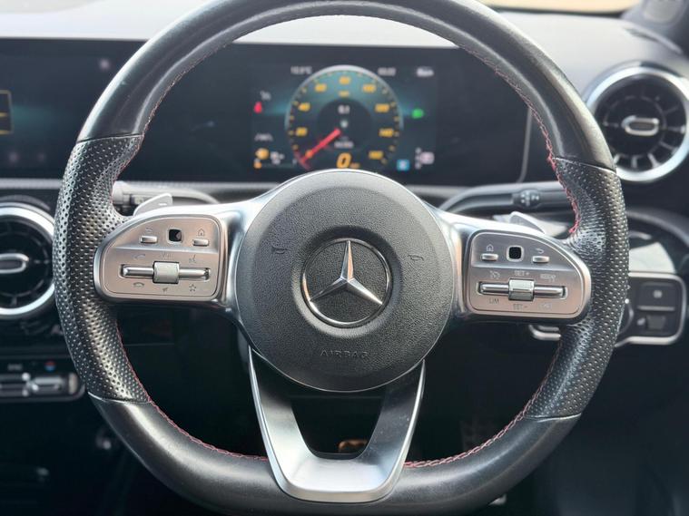 This 2019 Mercedes Benz A Class A200 AMG Line (Executive) benefits from a clear vehicle history check and comes with a 6 month warranty for your peace of mind. This Euro 6 compliant 1.3 litre petrol model, presented in the desirable AMG Line trim, offers a smooth driving experience. It features automatic headlamp activation, dual Bluetooth connectivity with two USB Type C ports, and a 180 degree reversing camera with parking guidelines. The Executive package adds convenient heated seats and parking assistance sensors for both the front and rear of the vehicle, complemented by THERMOTRONIC luxury automatic climate control for a comfortable cabin environment.Experience impressive performance with this A Class, capable of accelerating from 0 to 62 miles per hour in just 8.0 seconds, demonstrating its dynamic capabilities. The generous boot space ensures practicality for everyday needs and longer journeys. These highlights, combined with its advanced features and the reputable Mercedes Benz brand, position this A200 AMG Line as a compelling choice for those seeking a refined and capable compact car..
