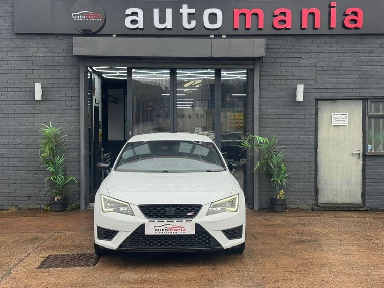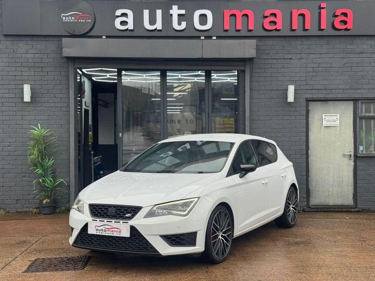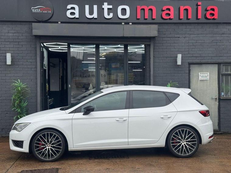 2016 Cupra Leon finished in Metallic white with Low Miles & Economically Friendly. this car is a well Equipped Great First or City Car. Includes Interior Features such as; Adjustable Head Restraints, Air Conditioning, Bottle Holders - Front Centre Console and Door, Bottle Holders - Rear Door, Door Courtesy Lights, Driver and Passenger Sun Visor with Ticket Holder, Driver Seat Height Adjustment, Front Door Pockets, Height Adjustable Steering Column, Luggage Compartment Light, Rear Door Pockets, Split Folding Rear Seats - 60-40, Sun Visors with Vanity Mirrors Exterior Features, Allow wheels, Door Handles - Body Coloured, Door Mirrors - Body Coloured, Electric Adjustment and Heated Door Mirrors, Electric Windows - Front and Rear, One Touch Down Drivers Window Control, Rear Spoiler with Integrated Brake Light, Tyre Repair Kit Other Features and Key Information 12V Power Outlet - Front x2, Cruise Control with Speed Limiter, Daytime Running Lights, Power Assisted Steering, RDS Radio-CD Player with MP3 Compatibility, Speakers x2, Trip Computer, Tyre Pressure Monitoring System - TPMS, USB and AUX Connections, ABS - Anti-Lock Brake System, Airbags - Driver, Airbags - Front Passenger, Airbags - Front Side, Airbags - Full Length Curtain, BAS - Brake Assist System, Childproof Rear Door Locks, ESP - Electronic Stability Programme, Front and Rear Seatbelt Reminder, Front Passenger Airbag De-Activation Switch, Immobiliser, ISOFIX Child Seat Anchorage Points - Rear - Outer Rear, Remote Central Locking. *NO HIDDEN ADMIN FEES* 1 YEAR AA BREAKDWON COVER* MINIMUM 3MM TYRE DEPTH, *NO EXTRA CHARGE FOR OUR 3 MONTHS WARRANTY *NO FUEL CHARGES *NO SURCHARGE FOR CREDIT CARDS We supply our vehicles with a Minimum 9 MONTHS MOT Test. If the vehicle requires a service in the next 3 months or 3000 MILES (WHICHEVER COMES SOONEST) we will service the vehicle before delivery. We are fully authorised & Regulated by the Financial Conduct Authority (FCA) and can offer a wide range of finance products and advice. Please visit our website at dealer's website to find out more about us and detailed directions to our site also view our full range of stock. With Over 65 similar cars always available..