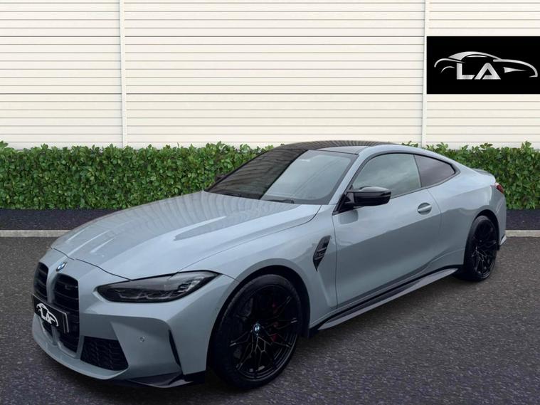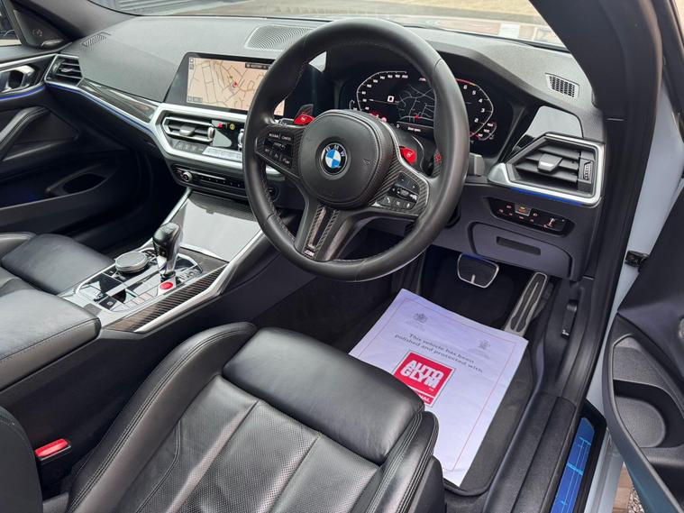 2022 22 BMW M4 COMPETITION M X-DRIVE 3.0 BITURBO AUTOSPEC INCLUDES:* BROOKLYN GREY* REVERSE CAMERA* LEATHER THREE SPOKE MULTI FUNCTION STEERING WHEEL WITH CARBON PADDLESHIFTS* 8 SPEED AUTOMATIC GEARBOX WITH SPORT MODE* COMFORT, ECO, SPORT AND SPORT PLUS DRIVING MODES* START / STOP TECHNOLOGY* M FRONT, SIDE AND REAR STYLING* M4 COMPETITION ENTRY SILLS* 20'' REAR AND 19'' FRONT COMPETITION STAR SPOKE FORGED ALLOY WHEELS FINISHED IN GLOSS BLACK* RED BRAKE CALIPERS * FULL BLACK LEATHER COMPETITION SPORTS INTERIOR WITH LIGHT UP M4 LOGO * UPGRADED HARMAN / KARDON SOUND SYSTEM* ELECTRIC ADJUSTABLE SEATS* ELECTRIC TWO STAGE MEMORY SEATS* THREE STAGE HEATED SEATS* AUTOMATIC LIGHTS* AUTOMATIC WIPERS* CARBON FIBRE INTERIOR AND DASH TRIM* CRUISE CONTROL* FULL COLOUR PROFESSIONAL WIDESCREEN SATELLITE NAVIGATION SYSTEM* BMW I-DRIVE SYSTEM* DAB DIGITAL RADIO* MUSIC HARD DRIVE* VOICE COMMAND* BLUETOOTH FACTORY PHONE CONNECTION AND INTERFACE* FRONT AND REAR PARKING SENSORS WITH ON SCREEN ASSIST* AIR CONDITIONING* DUAL DIGITAL CLIMATE CONTROL* LANE ASSIST* DTC TRACTION CONTROL* ELECTRIC FOLDING MIRRORS * KEYLESS GO/ENTRY* FOGLIGHTS* IPOD/AUX/USB CONNECTION* LEATHER CENTRE ARMREST* TYRE PRESSURE MONITORS* TWIN CUP HOLDERS* REAR HEATED SCREEN* GENUINE BMW CARPET MATS* PRIVACY GLASS* FULL BMW MAIN DEALER SERVICE HISTORY FROM NEW STUNNING LOOKING CAR, EXCELLENT PERFORMANCE WITH GREAT SPECEXCELLENT CONDITION INSIDE AND OUT, JUST BEEN VALETEDHPI CLEAR WITH GOLD REPORT, 5 DAYS FREE DRIVEAWAY INSURANCE...£45, 995PART EXCHANGE WELCOMEFINANCE AVAILABLE.