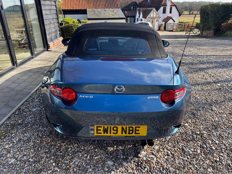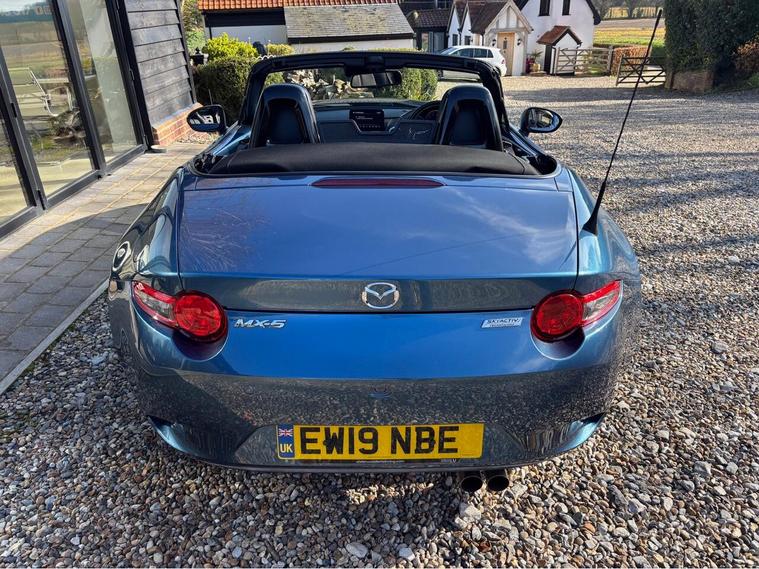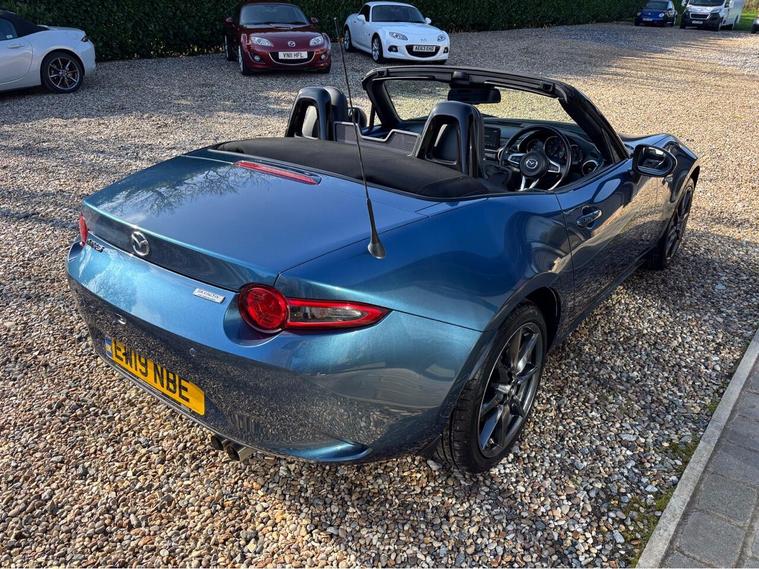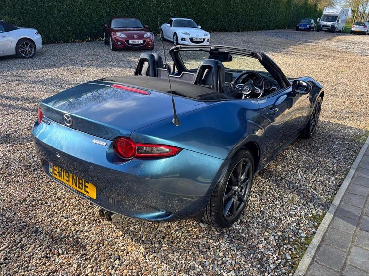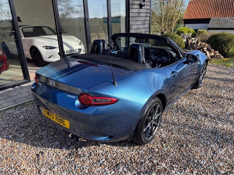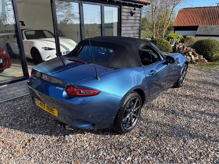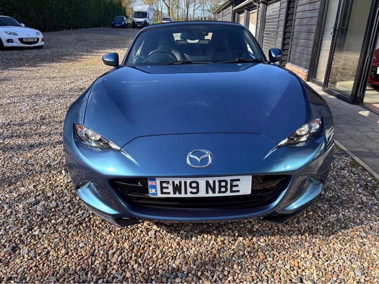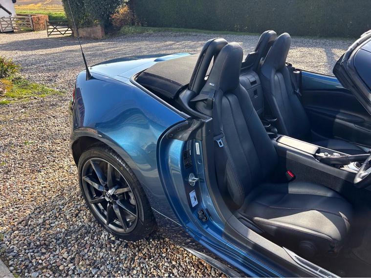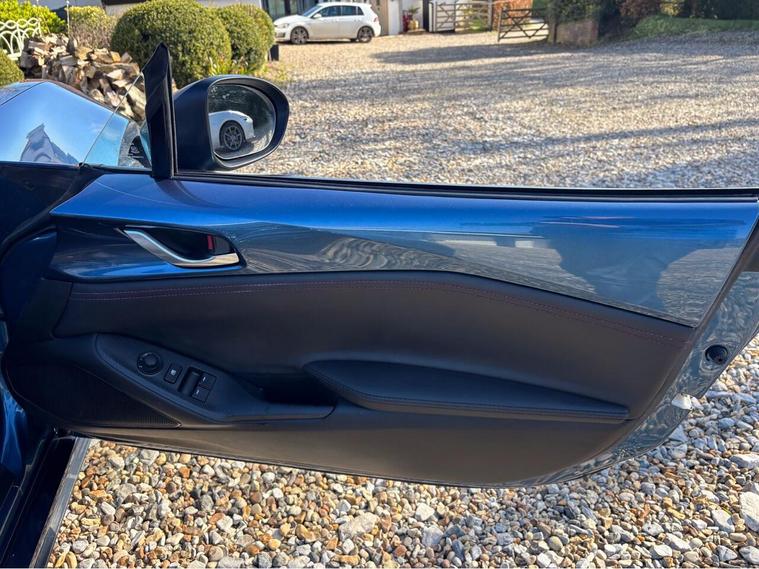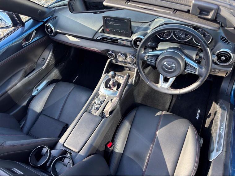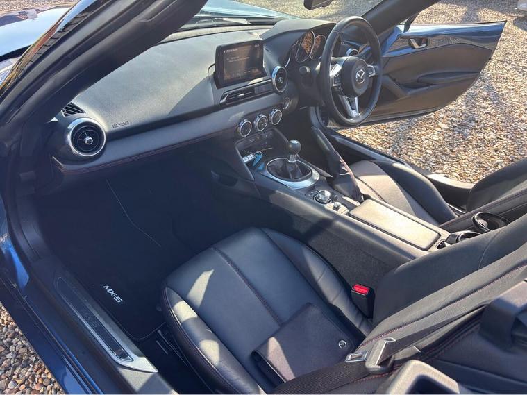 MAZDA + 1 OWNER ONLY 21, 000 MILES !! 6 MAIN DEALER SERVICES + GLEAMING ETERNAL BLUE METALLIC + FULL HEATED BLACK LEATHER SEATS+ HI SPEC+ 6 SPEED+ SAT NAV WITH APPLE CAR PLAY+ 17'' SHADOW CHROME ALLOYS+ REVERSING SENSORS+ CRUISE+ CLIMATE+ 2 KEYS+ VIEWING ESSENTIAL+ GREAT COLOUR COMBO+ BEST CHOICE OF QUALITY LOW MILEAGE MX5+''' PLEASE SEE OUR GOOGLE REVIEWS'' ALL MX5 FULLY PREPARED PRIOR TO DELIVERY.