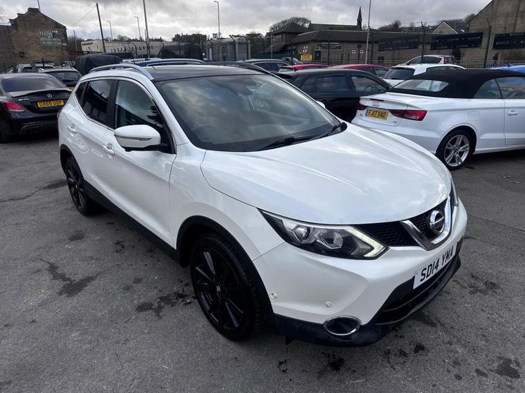 The 2014 Nissan Qashqai 1.5 dCi Tekna 2WD in White is a stylish and practical SUV that perfectly blends comfort, efficiency, and premium features — making it an excellent choice for families and drivers who want space without sacrificing style. Finished in a crisp white exterior, the Qashqai has a modern and confident road presence, while the range-topping Tekna trim offers a host of high-end features designed to enhance every journey. Powered by the economical 1.5 dCi diesel engine, it delivers impressive fuel efficiency of up to around 74 mpg combined while keeping emissions low, making it a fantastic option for both everyday commuting and long-distance driving. Inside, you’ll find a well-crafted cabin packed with premium touches such as full black leather seating, a panoramic glass roof, satellite navigation, rain sensing wipers, heated windscreen, cruise control, dual-zone climate control, front and rear parking sensors with a 360° camera system, and heated seats for added comfort and convenience. Adding to this, the specifications for the exterior gives the vehicle more aggression and a cleaner look with 19in gloss black alloy wheels, LED daytime running lights, roof rails and much more that adds to this stunning example! With its spacious interior and exterior, advanced technology, and smooth driving experience, this Qashqai offers the perfect balance of practicality, reliability, and standout style — a superb SUV that truly delivers outstanding value. This vehicle is in good condition and comes with 2 keys, full service history and is HPI Clear!This vehicle comes with 6 months warranty, 12 Months MOT and 12 Months AA Breakdown Cover, part exchange is welcome, finance packages are also available. Deliveries are also available on trade prices.For further information you can contact us via email, messages or give us a call via the numbers or email below:01274914032hnsmotors7 dealer's website