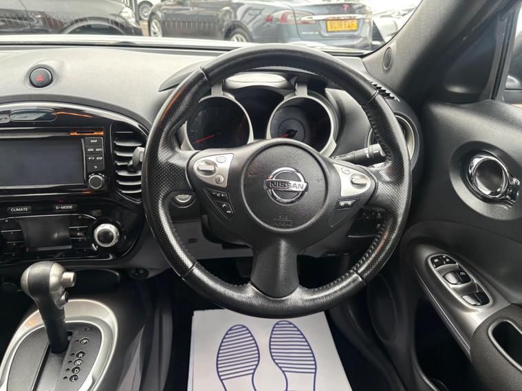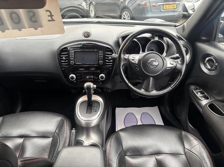 HERE WE HAVE ON SALE IS THE WONDERFUL NISSAN JUKE 1.6 TEKNA CVT FINISHED IN METALLIC dealer's website WITH LEATHER HEATED SEATS, SATELLITE NAVIGATION, HANDSFREE BLUETOOTH SYSTEM, REVERSE CAMERA, CRUISE CONTROL, ISOFIX MOUNTING POINTS, ELECTRIC WINDOWS, ELECTRIC MIRRORS, MULTIFUNCTIONAL STEERING WHEELS, ALLOY WHEELS, REMOTE CENTRAL LOCKING AND X2 KEYS......................THIS VEHICLE BOASTS FULL SERVICE HISTORY CONSISTING 5078 MILES, 9622 MILES, 14999 MILES, 19996 MILES, 22792 MILES, 25585 MILES, 26884 MILES, 28188 MILES, 29054 MILES, 32150 MILES, AND 34801 MILES MEANING THIS VEHICLE HAS BEEN MAINTAINED TO AN EXCELLENT STANDARD....................THIS VEHICLE WILL BE SERVICED AT POINT OF SALE AND COMES WITH BRAND NEW 12 MONTHS MOT........................THIS VEHICLE IS IN EXCELLENT CONDITION AND DRIVES LIKEWISE....................CALL OUR SALES TEAM ON 01275242671 TO BOOK A TEST DRIVE......................FINANCE AVAILABLE ON REQUEST..