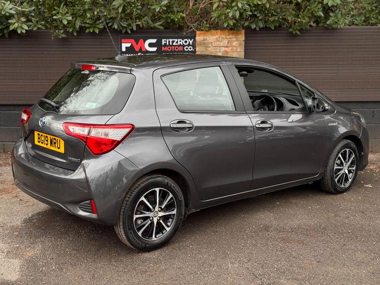 We are pleased to offer this Toyota Yaris 1.5 Hybrid, a reliable and economical hatchback that is perfectly suited to both city driving and longer journeys. Supplied with 2 keys, just 1 former keeper, and a full main dealer service history, this example also benefits from remaining Toyota warranty, giving excellent peace of mind for the next owner.Finished in grey with alloy wheels, the car presents very well and reflects its careful ownership. On the road, the Yaris is smooth, quiet, and extremely efficient thanks to Toyota’s proven self charging hybrid system, allowing for electric driving at lower speeds and seamless switching to petrol when needed.Inside, the cabin is modern and well equipped, featuring dual zone climate control, cruise control, and a multifunction steering wheel. Technology includes Bluetooth audio and handsfree connectivity, DAB digital radio, and the Toyota Touch infotainment system. It also benefits from a reversing camera along with front parking sensors, making manoeuvring simple and stress free.Additional features such as push button start, road sign assist, and Toyota Safety Sense enhance both convenience and safety, making this a great everyday car.This Toyota Yaris Hybrid is an excellent choice for anyone looking for a dependable, efficient, and easy to run vehicle with low running costs and a strong reputation for reliability.At Fitzroy Motor Co, all our vehicles are hand picked and purchased directly from private customers. Every vehicle is HPI clear, with a complimentary HPI report provided for your peace of mind. Each car undergoes a thorough inspection and is prepared for same day pickup. If a vehicle has six months or less MOT remaining, we will provide a fresh 12 month MOT for added reassurance.Nationwide delivery is available from £149 and finance options are available from 8.9 percent APR with zero deposit plans.We are open seven days a week. Call us on 01425318542 to arrange a viewing or test drive..