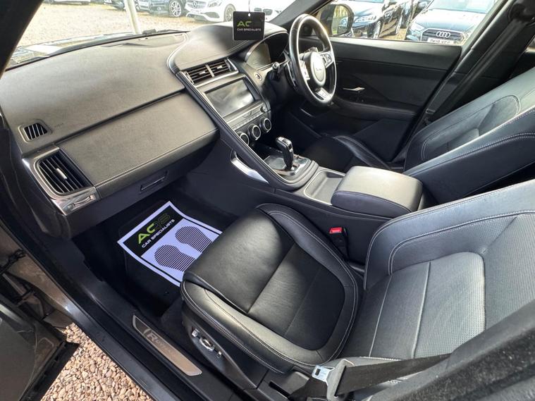 Here at AQS Car Specialist we take pride in being one of the few highly rated dealers for our customer service from Autotrader working closely together so we can go the extra mile to make sure you are getting the best service out there. All vehicles undergo a full visual and Mechanical health inspection, driven and tested. All essential work carried out with no expense spared. We offer an extended nation wide warranty with the option to extend up to 36 months, giving our customers full peace of mind and security when purchasing a car from AQS car specialists.Any inspection welcome, Test drive welcome, Part exchanges welcome. All dealer facilities available on site. Here at AQS Car Specialist we are delighted to offer this stunning example of a Jaguar E-Pace 2.0 R-Dynamic HSE 4WD. Finished in a gorgeous Metallic Grey with a contrasting full Black leather interior alongside 20 inch gloss Black alloys. Recently serviced and complimented by a full and up to date service history, comes with a fresh 12 months MOT. In fantastic condition both inside and out, drives like a dream ! These E-Paces are renown for their sleek design, luxurious interior, silky smooth drive and being reliable ! This particular example benefit from being fitted with some great features which include, Dual Zone Climate Controlled Air Conditioning, Adaptive Cruise Control, Pro Sat Nav - Big Screen, DAB, Bluetooth Connectivity, USB Input, Panoramic Glass Sunroof with Blinds, Park Assist, Reverse Camera, 360 Cameras with Birds Eye View, Gesture Tailgate, Electrically Closing Tailgate, Electrically Adjustable Heated and Cooled Front Seats with Memory Function, Heated Rear Seats, Heated Steering Wheel, Auto LED Headlights, Rain Sensing Wipers, Lane Keep Assist, Meridian Surround Sound, Keyless Entry, Keyless Go, Hill Hold Assist, Full R Design Styling from Factory, Tyre Pressure Monitoring System, Split Fold Rear Bench amongst all the usual Jaguar refinements you expect..