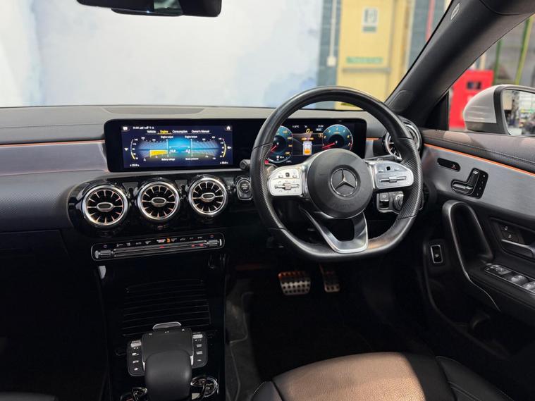 This 2021 Mercedes Benz CLA250 AMG Line Premium Plus 2 is a Euro 6 compliant vehicle, offering a blend of performance and luxury. Powered by a 2.0 litre petrol engine, this model boasts the sophisticated AMG Line trim, ensuring a dynamic driving experience. Key features include keyless entry for effortless access, THERMOTRONIC luxury automatic climate control with two zones and a display for personalised comfort, and MULTIBEAM LED headlights with Adaptive Highbeam Assist Plus for superior visibility. Inside, you will find a premium Mercedes Benz sound system delivering 225W of audio clarity, and heated front seats for added comfort during colder journeys.The Mercedes Benz CLA250 AMG Line Premium Plus 2 truly excels with its impressive acceleration, achieving 0 to 62 miles per hour in just 6.3 seconds. This swift performance indicates a superior driving dynamic compared to many other vehicles in its class. Combined with its advanced lighting, climate control, and audio systems, this CLA offers a refined and engaging ownership experience, making it a standout choice for those seeking both style and substance..
