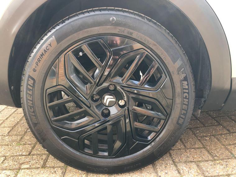 This 2024 Citroen e C4 X e series presents a superb ownership proposition, having had only one owner from new. This electric vehicle boasts a 50 kWh battery, offering a maximum range of 223 miles on a full charge. Charging is convenient, with a full charge at home taking approximately 7 hours and 30 minutes using a 7kW charger, while rapid public charging can take you from empty to 80% in just 30 minutes. Inside, you'll find a wealth of technology, including a Drivers Head Up Display, the My Citroen Drive Plus system with Android Auto and Apple CarPlay, and Highway Driver Assist for more relaxed journeys. Parking is made easier with a Rear Camera featuring Top Rear Vision, and the cabin comfort is assured with Automatic Dual Zone Air Conditioning.The e C4 X e series stands out with its generous boot space, providing ample room for your luggage or shopping. The inclusion of features like the adaptive cruise control within the Highway Driver Assist system and the advanced parking camera with top view demonstrates a commitment to driver convenience and safety, setting it apart from other vehicles in its class. This electric Citroen offers a refined and practical driving experience, perfect for both daily commutes and longer trips..