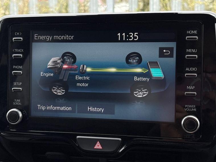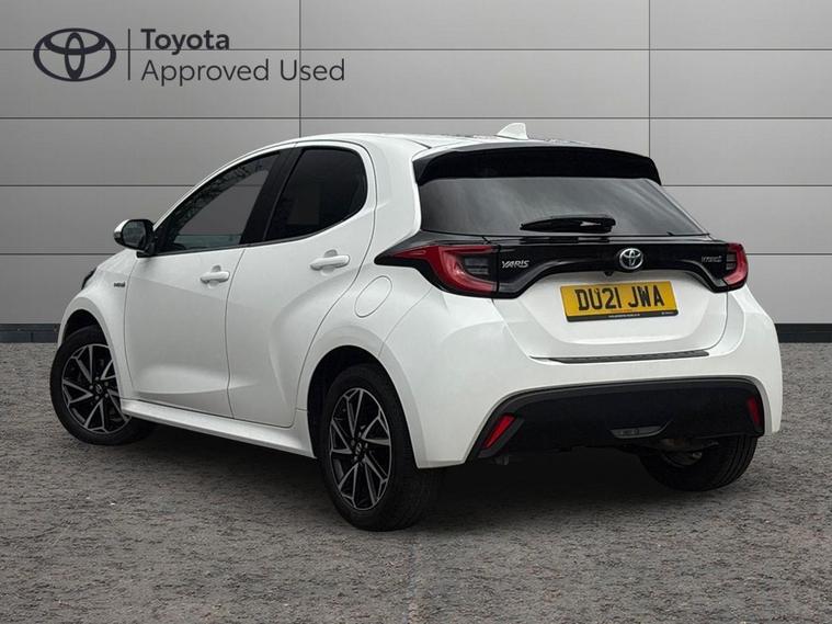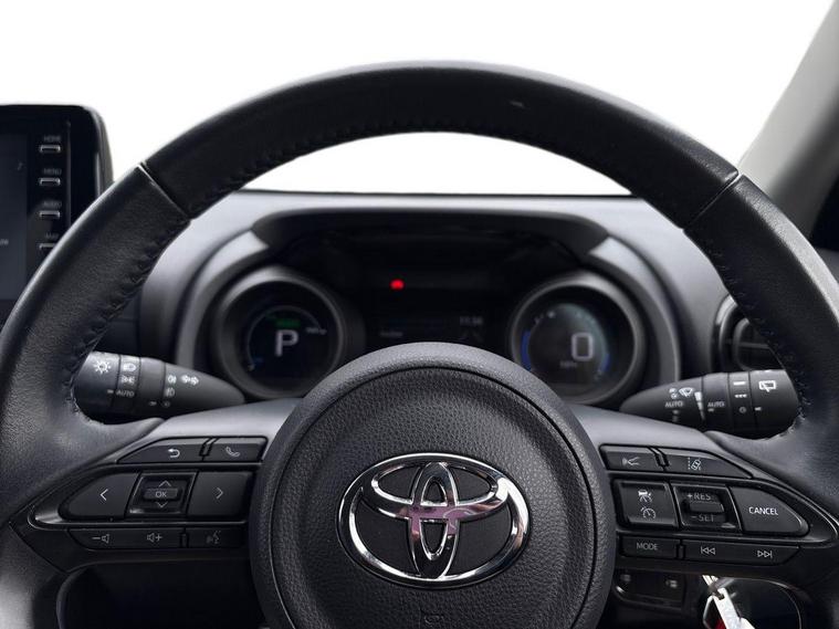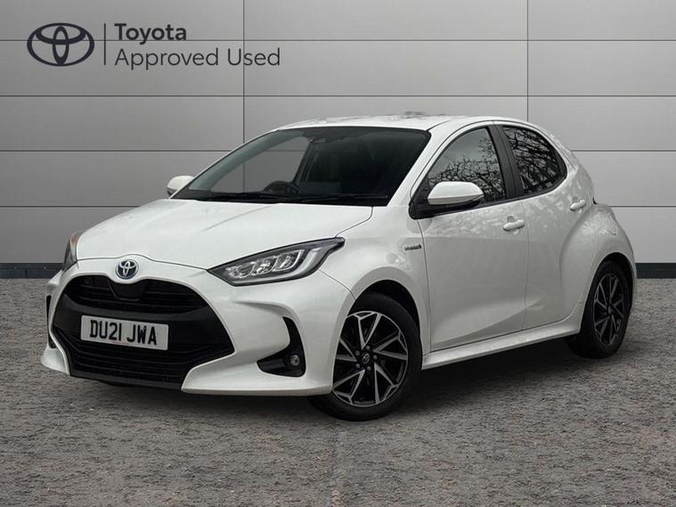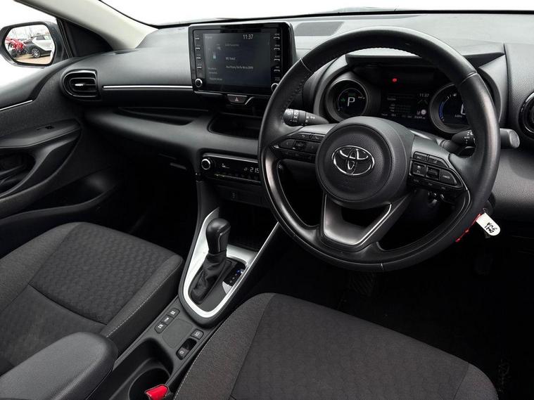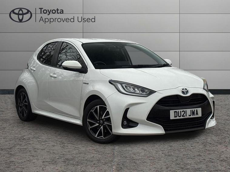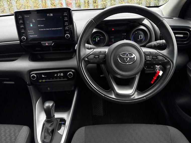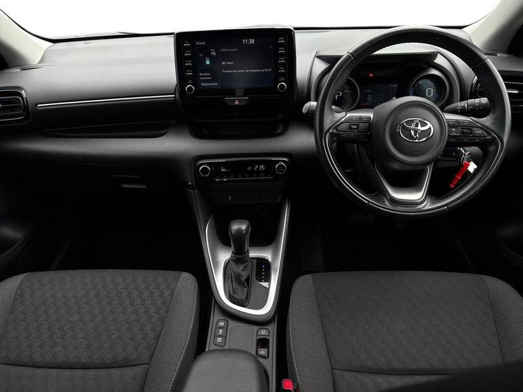 This 2021 Toyota Yaris VVT-h Design is a Toyota manufacturer approved vehicle, offering you peace of mind with a 12 month warranty. This stylish hatchback features a 1.5L petrol hybrid engine, meeting Euro 6 emission standards. The Design trim level ensures you benefit from a range of notable features, including striking LED headlights, automatic headlights for convenience, and a reversing camera to aid parking. Inside, you will appreciate the automatic air conditioning, keeping the cabin at your preferred temperature.The Toyota Yaris VVT-h Design stands out with its impressive fuel economy, achieving an exceptional 69 miles per gallon, which indicates it is more economical than many other vehicles in its class. Furthermore, its low CO2 emissions highlight its environmental consideration. This model also comes equipped with Toyota Safety Sense 2, which includes adaptive cruise control, providing a more relaxed and safer driving experience..